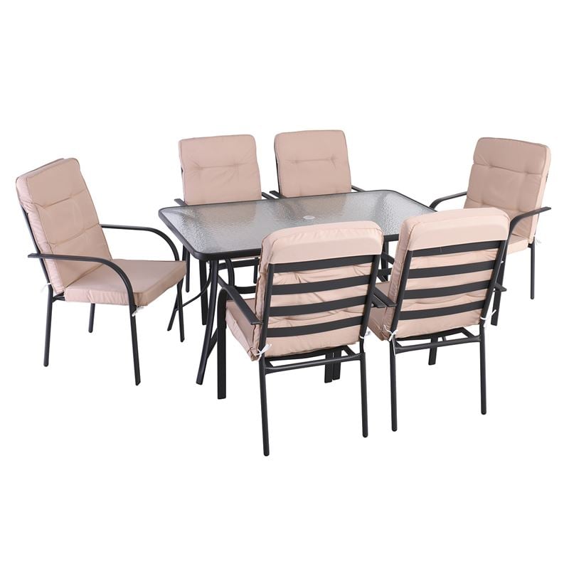 Ε5151,S1 ASTOR Set (6 Πολ.+Τραπ.150×90) Μεταλ.Ανθρακί/Μαξιλάρι Μπεζ