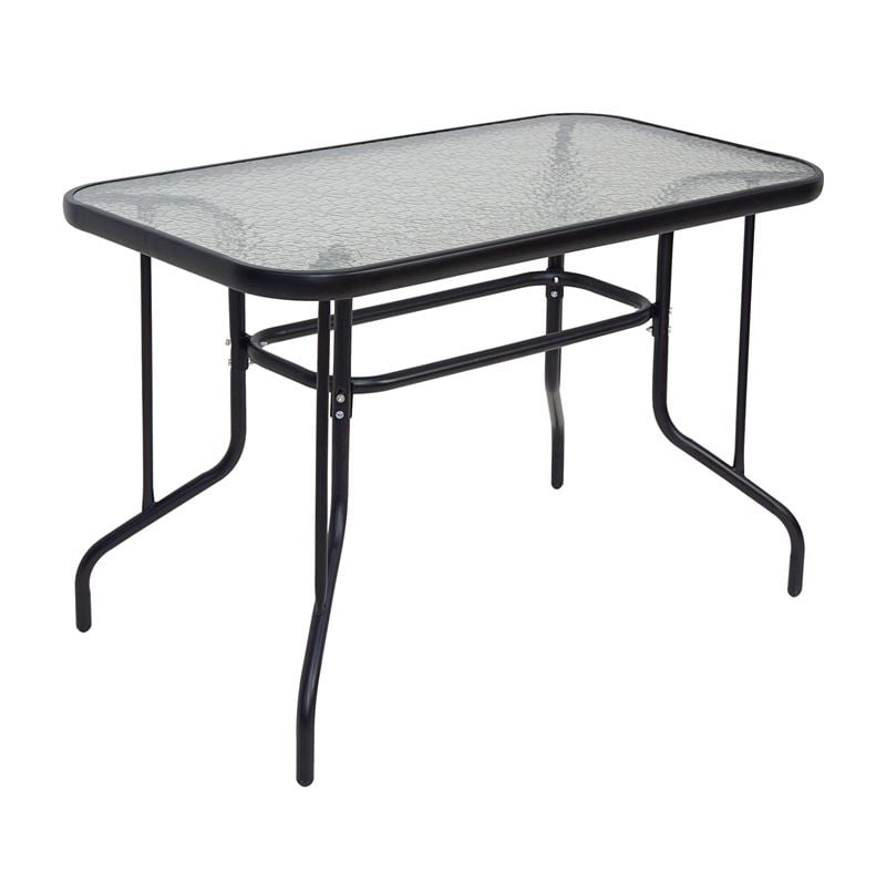 BALENO Τραπέζι Κήπου Βεράντας, Μέταλλο Βαφή Μαύρο, Γυαλί Tempered