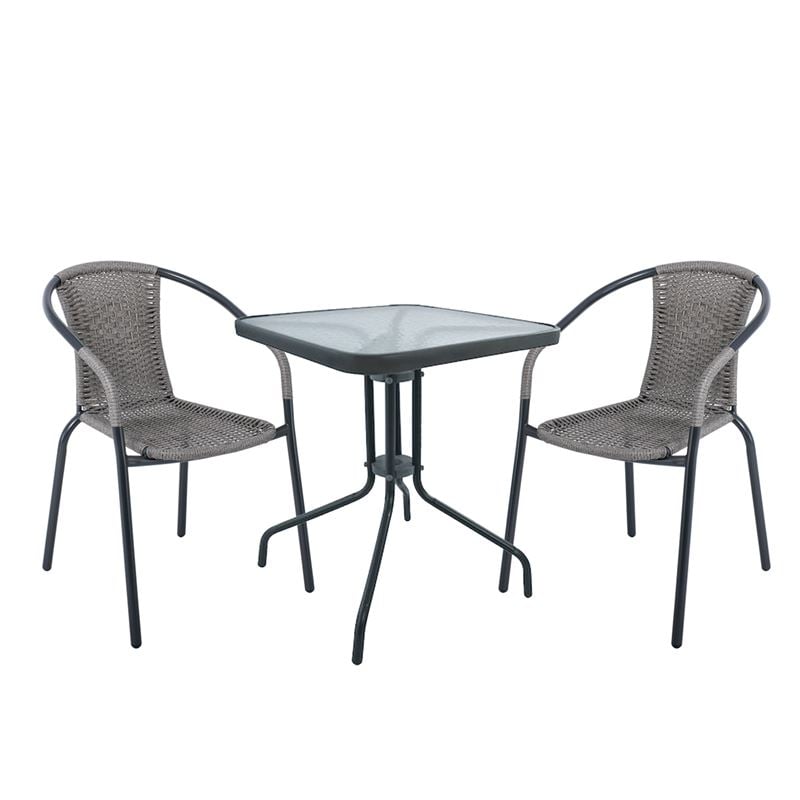 Ε240,10 BALENO Set (Τραπ.60x60cm+2 Πολ) Μεταλ.Ανθρακί/Mixed Grey Wicker