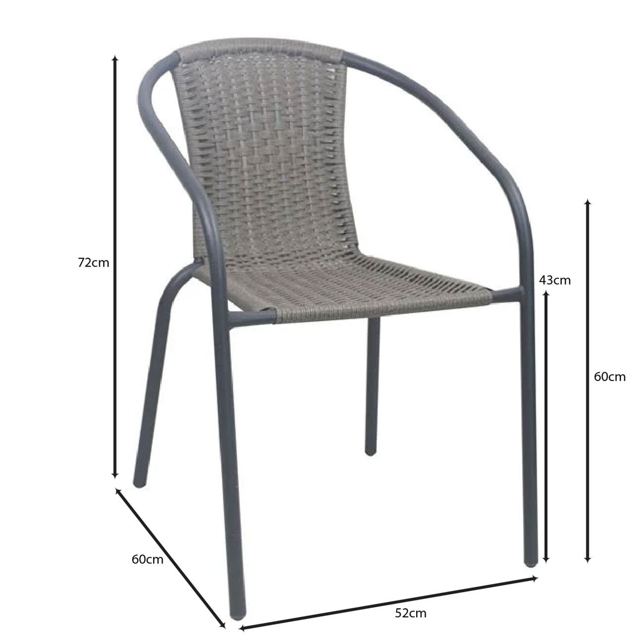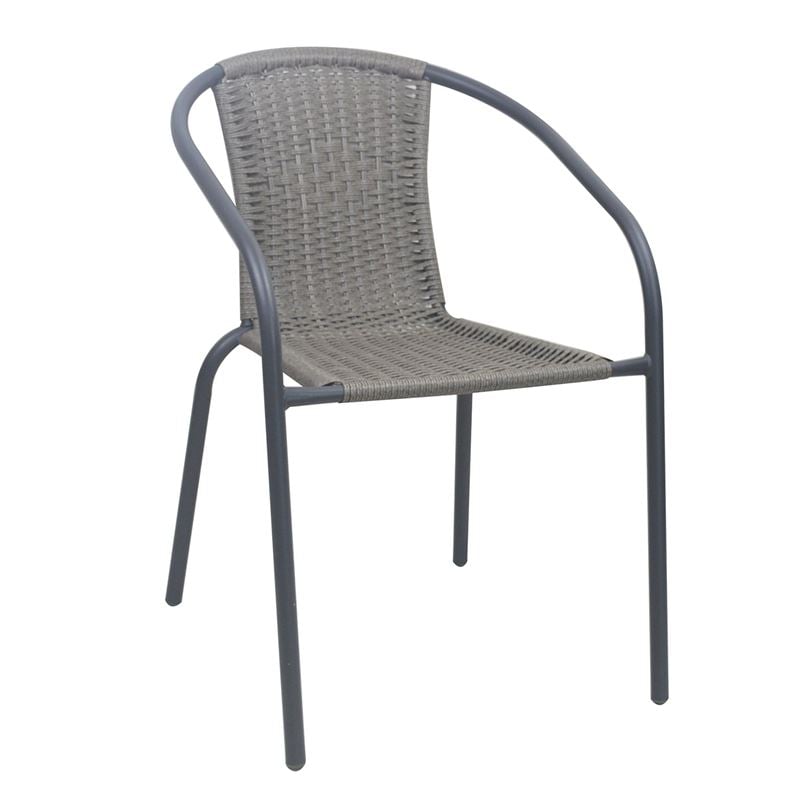 BALENO-W Πολυθρόνα Στοιβαζόμενη, Μέταλλο Βαφή Ανθρακί, Wicker Mixed Grey