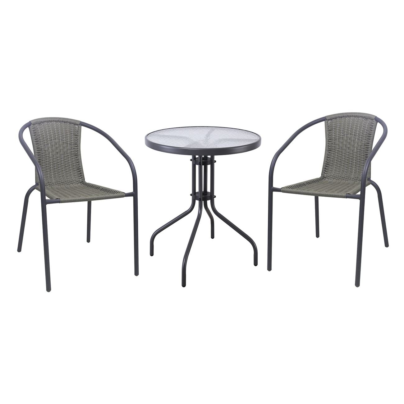 BALENO-W Set Κήπου – Βεράντας: Τραπέζι + 2 Πολυθρόνες Μέταλλο Ανθρακί, Wicker Mixed Grey