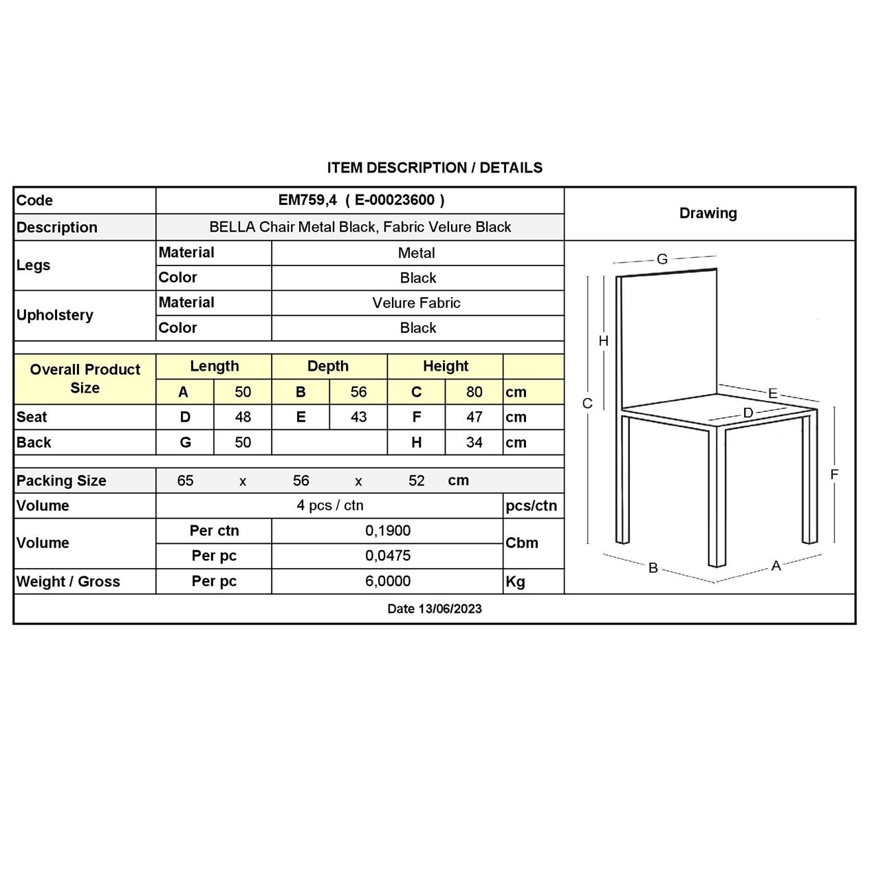 ΕΜ759,4 BELLA Καρέκλα Μέταλλο Μαύρο/Ύφασμα Velure Μαύρο