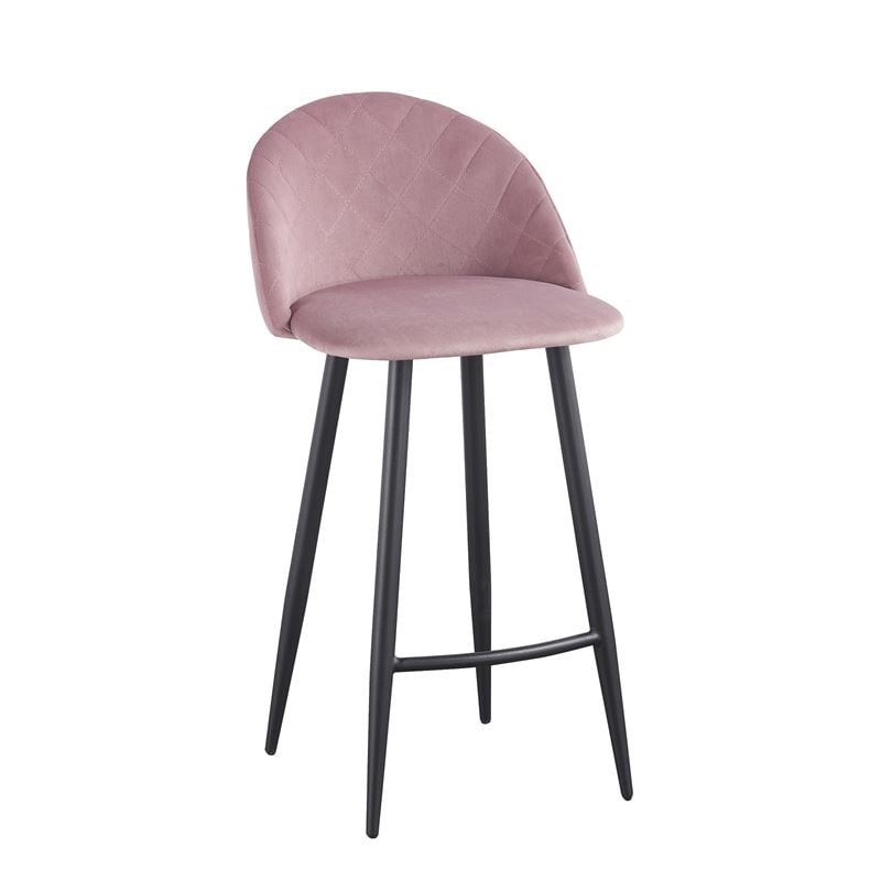 BELLA Σκαμπό BAR με Πλάτη, Μέταλλο Βαφή Μαύρο, Ύφασμα Velure Απόχρωση Dirty Pink