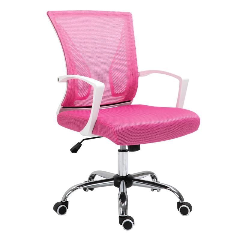 BF2120-S Πολυθρόνα Γραφείου Άσπρο – Μέταλλο Βάση Χρώμιο Mesh Ροζ