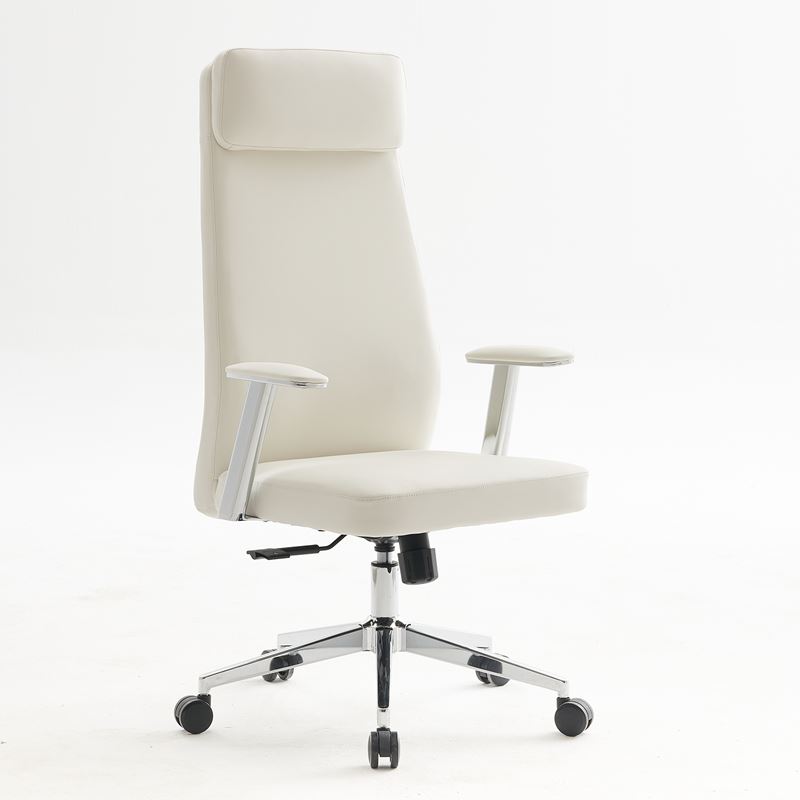 BF8800 Πολυθρόνα Γραφείου Διευθυντή, Pu Άσπρο, Βάση & Μπράτσα Χρώμιο