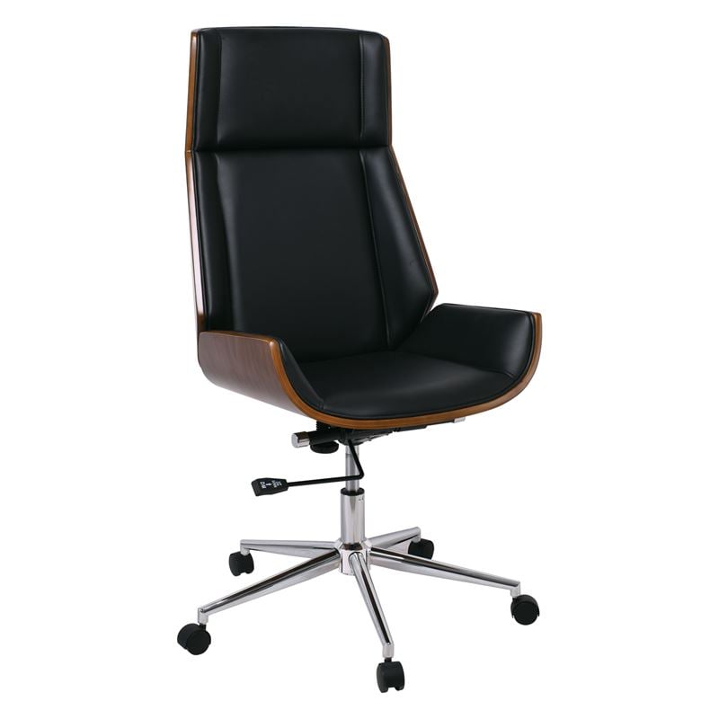 BF9850 Πολυθρόνα Γραφείου Διευθυντή, Μέταλλο Χρώμιο Καρυδί – Pu Μαύρο