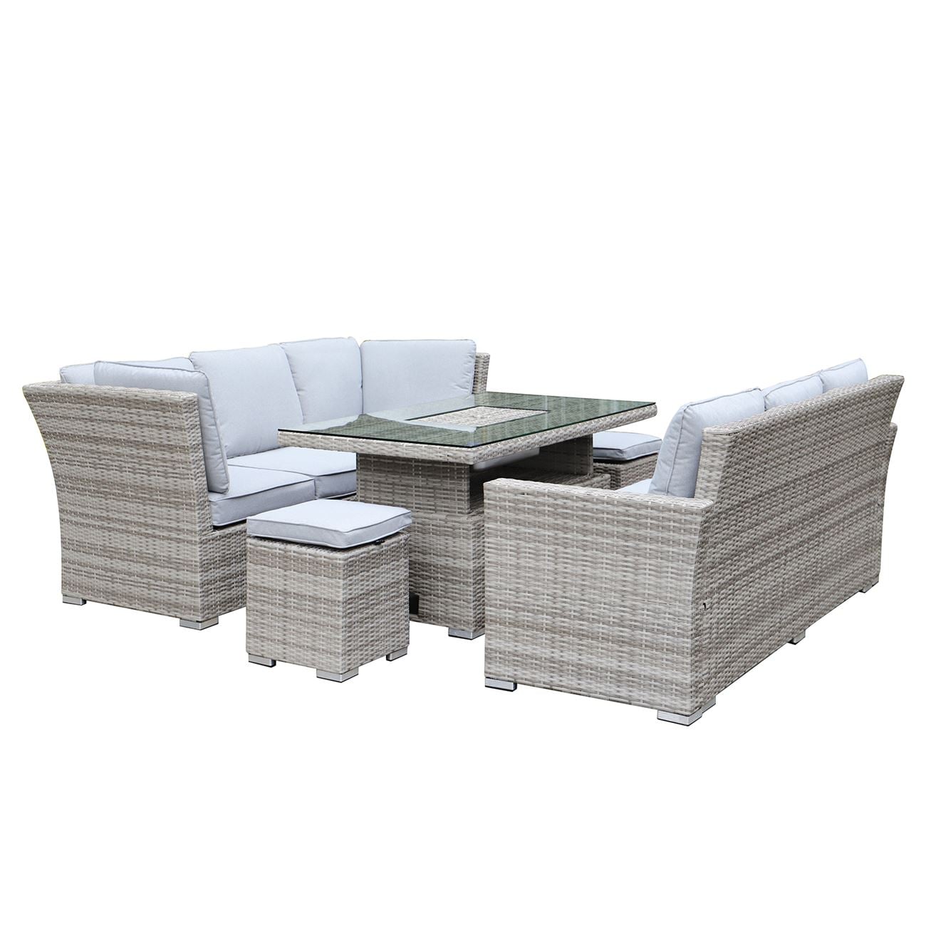 BOOZER Set Σαλόνι-Τραπεζαρ.ALU Τραπέζι ανυψούμενο+2τ 3θ Γωνία +2τ Σκαμπό, Ανοιχτό Γκρι