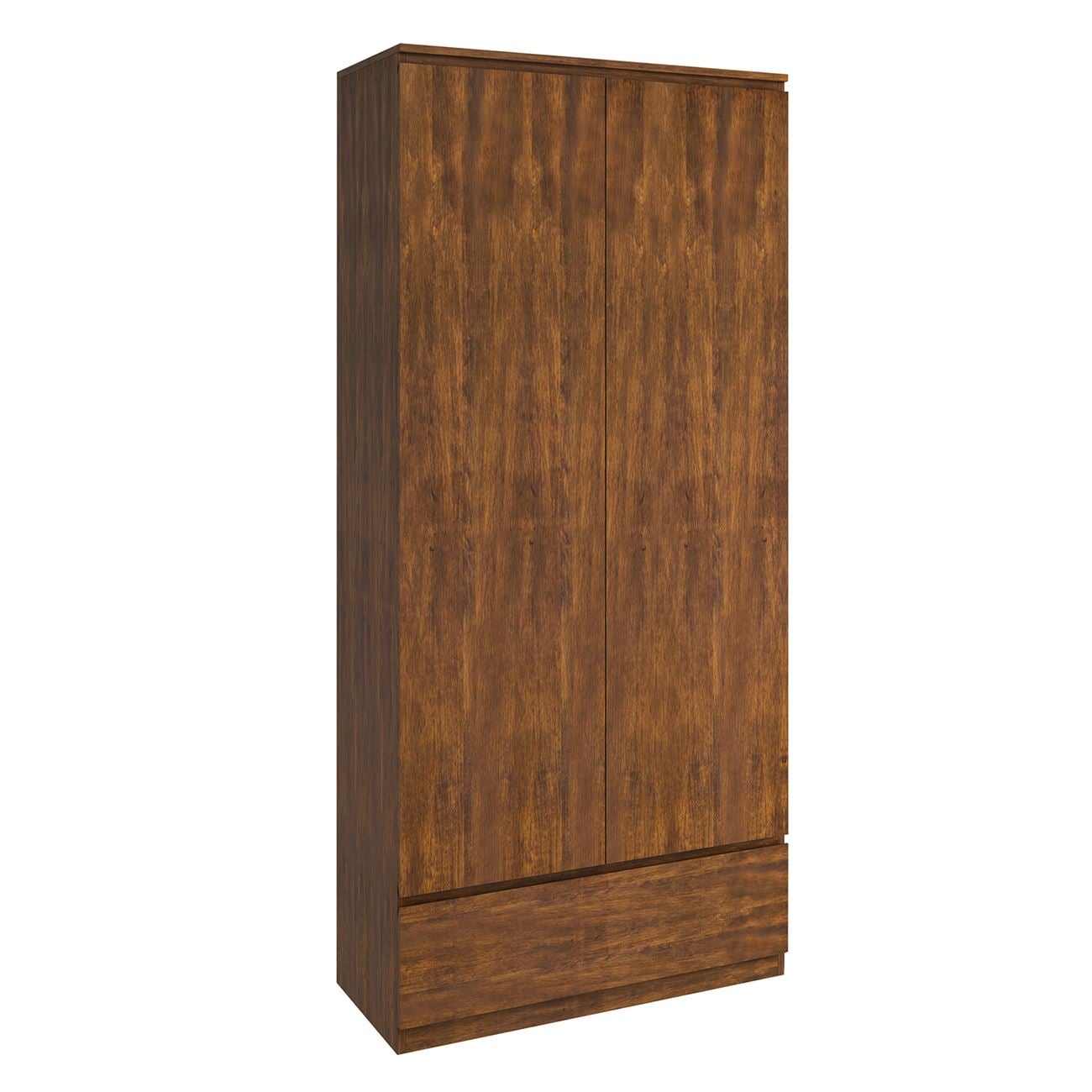 BORNEO Ντουλάπα Δίφυλλη με 1 εξωτερικό Συρτάρι, Απόχρωση Καρυδί