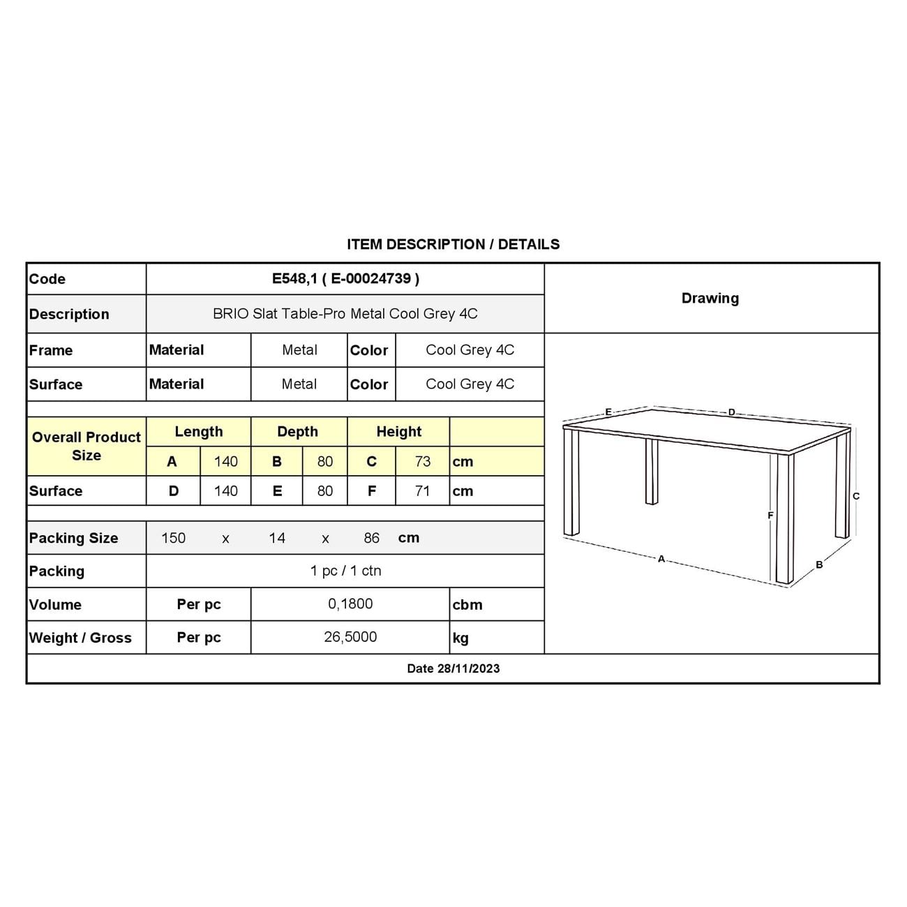 BRIO Flat Τραπέζι-Pro Κήπου – Βεράντας, Μέταλλο Βαφή Cool Grey 4C