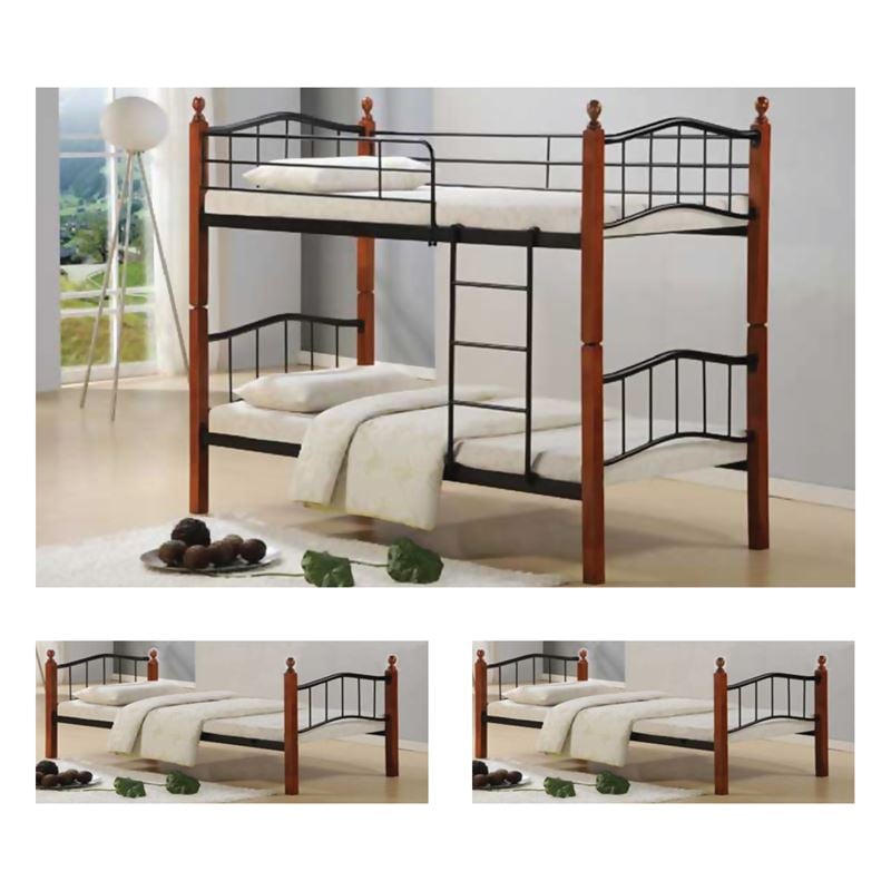 Ε8038 – BUTTON Kρεβάτι/Κουκέτα 90x200cm Mεταλ.Μαύρο/Ξύλο Καρυδί