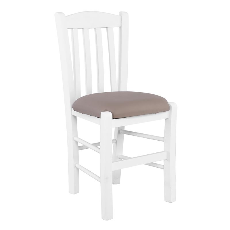 CASA Καρέκλα Οξιά Βαφή Εμποτισμού Άσπρο, Κάθισμα Pu Cappuccino