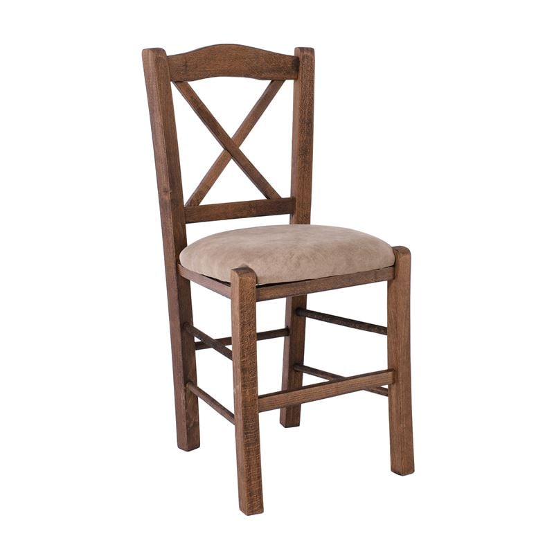 METRO Καρέκλα Οξιά Βαφή Εμποτισμού Καρυδί, Κάθισμα Suede Μπεζ