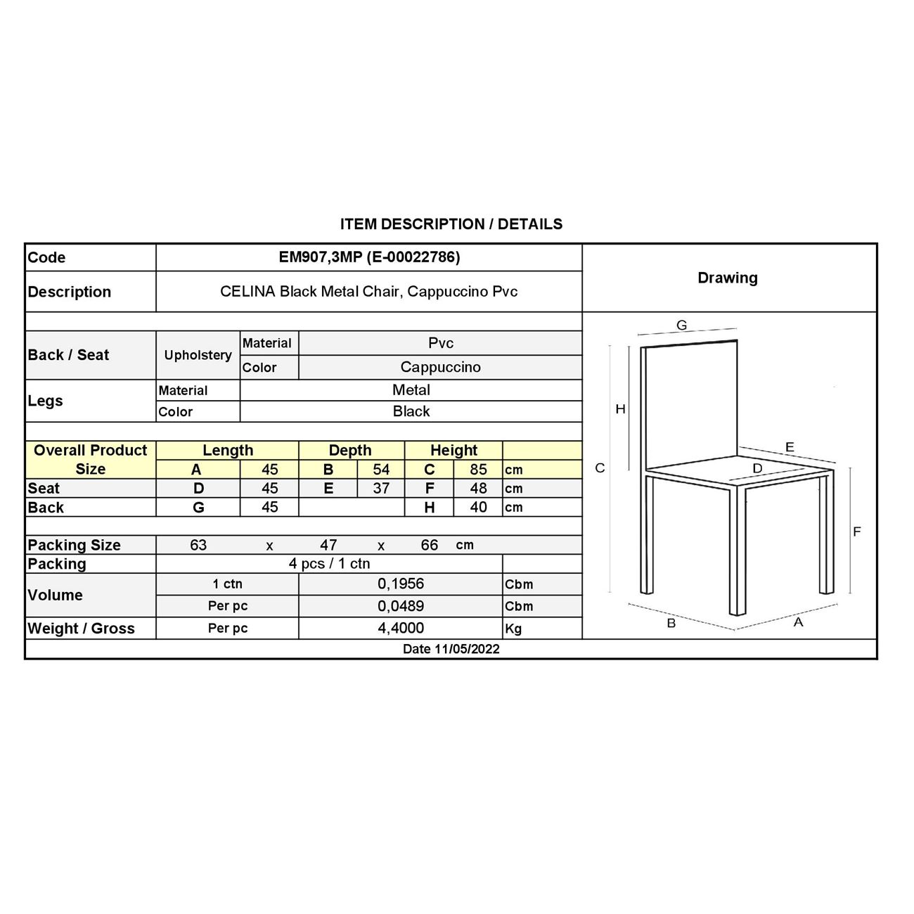 ΕΜ907,3ΜP CELINA Καρέκλα Μέταλλο Μαύρο/Pvc Cappuccino