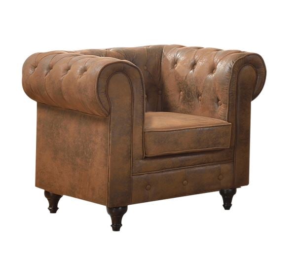 CHESTERFIELD York Πολυθρόνα Σαλονιού – Καθιστικού, Ύφασμα Απόχρωση Καφέ Camel