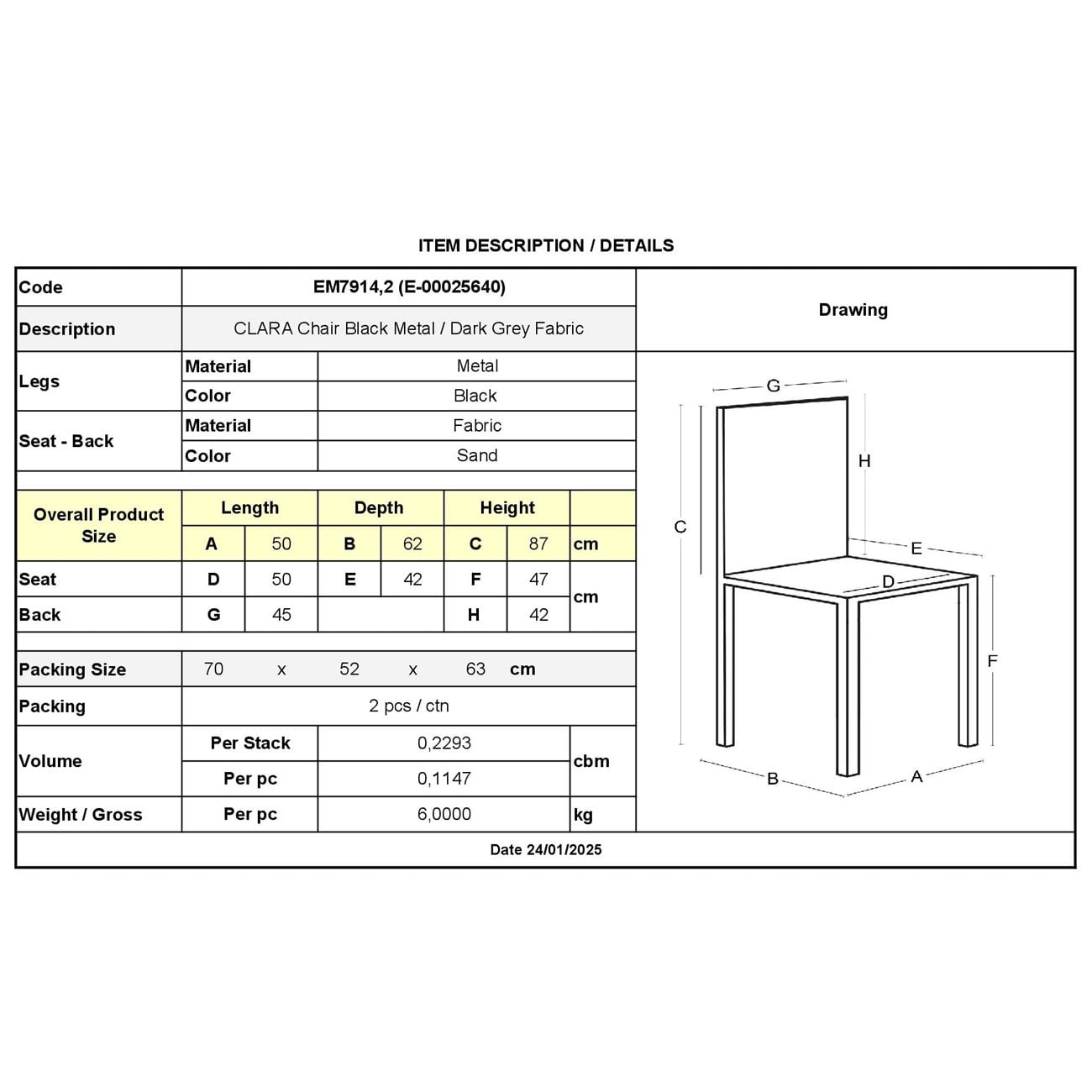 ΕΜ7914,2 CLARA Καρέκλα Μέταλλο Μαύρο/Ύφασμα Sand