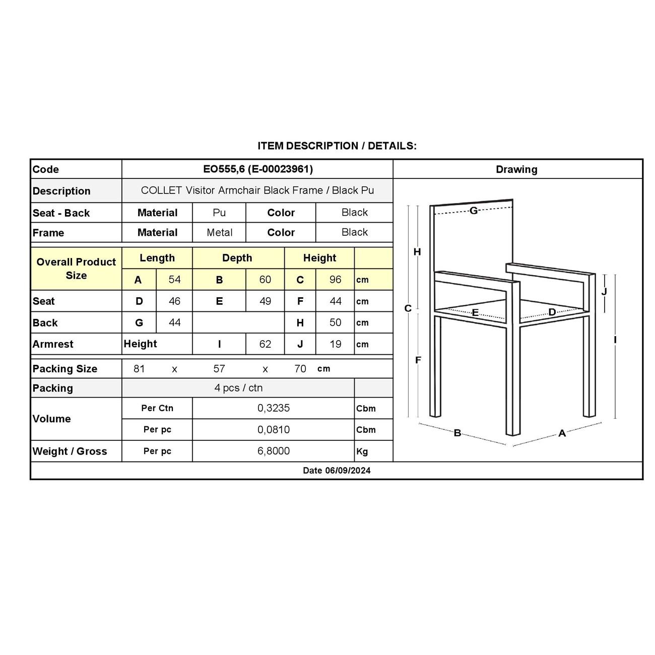 COLLET Πολυθρόνα Γραφείου Επισκέπτη Μέταλλο Μαύρο, Pu Μαύρο