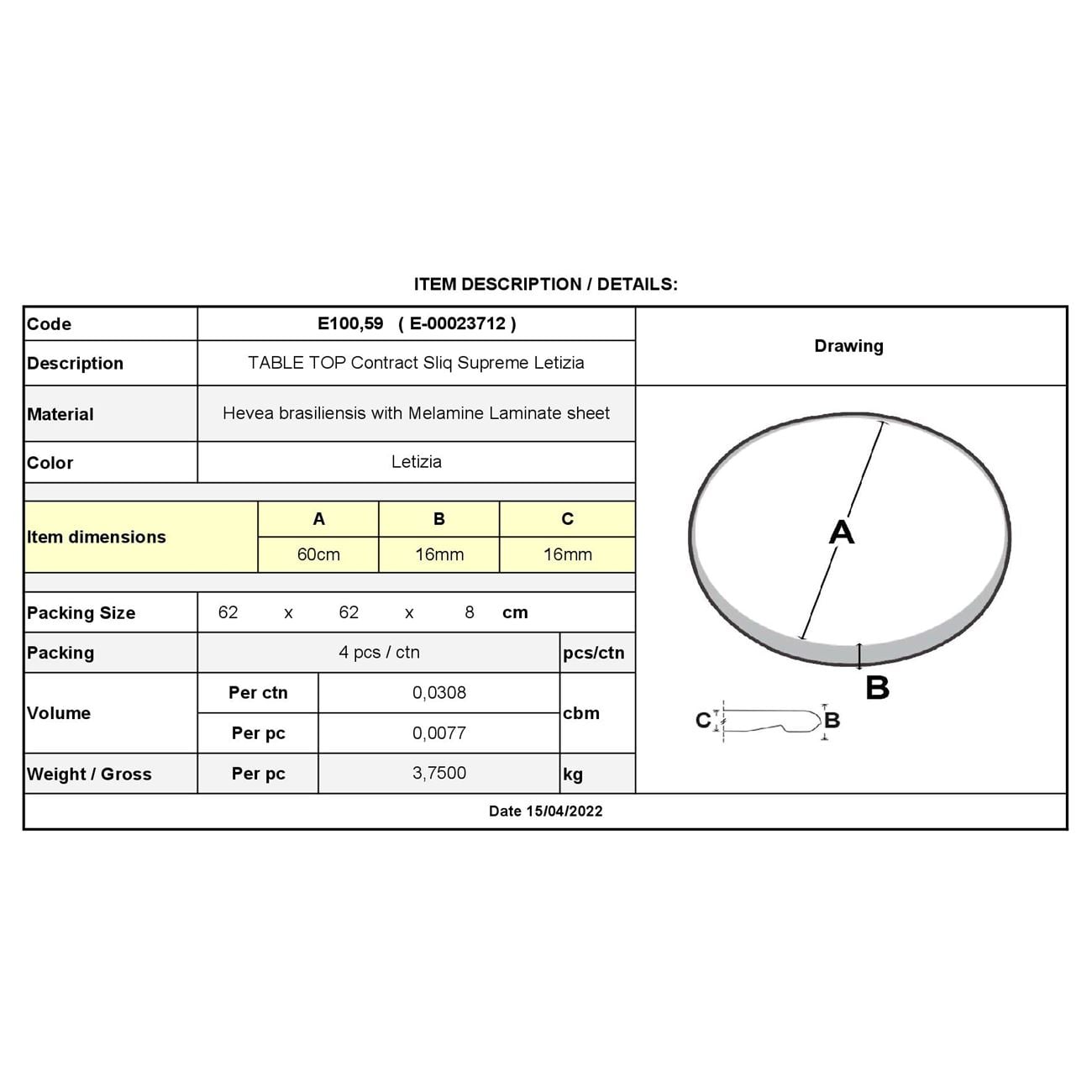 Επιφάνεια Τραπεζιού Φ60cm