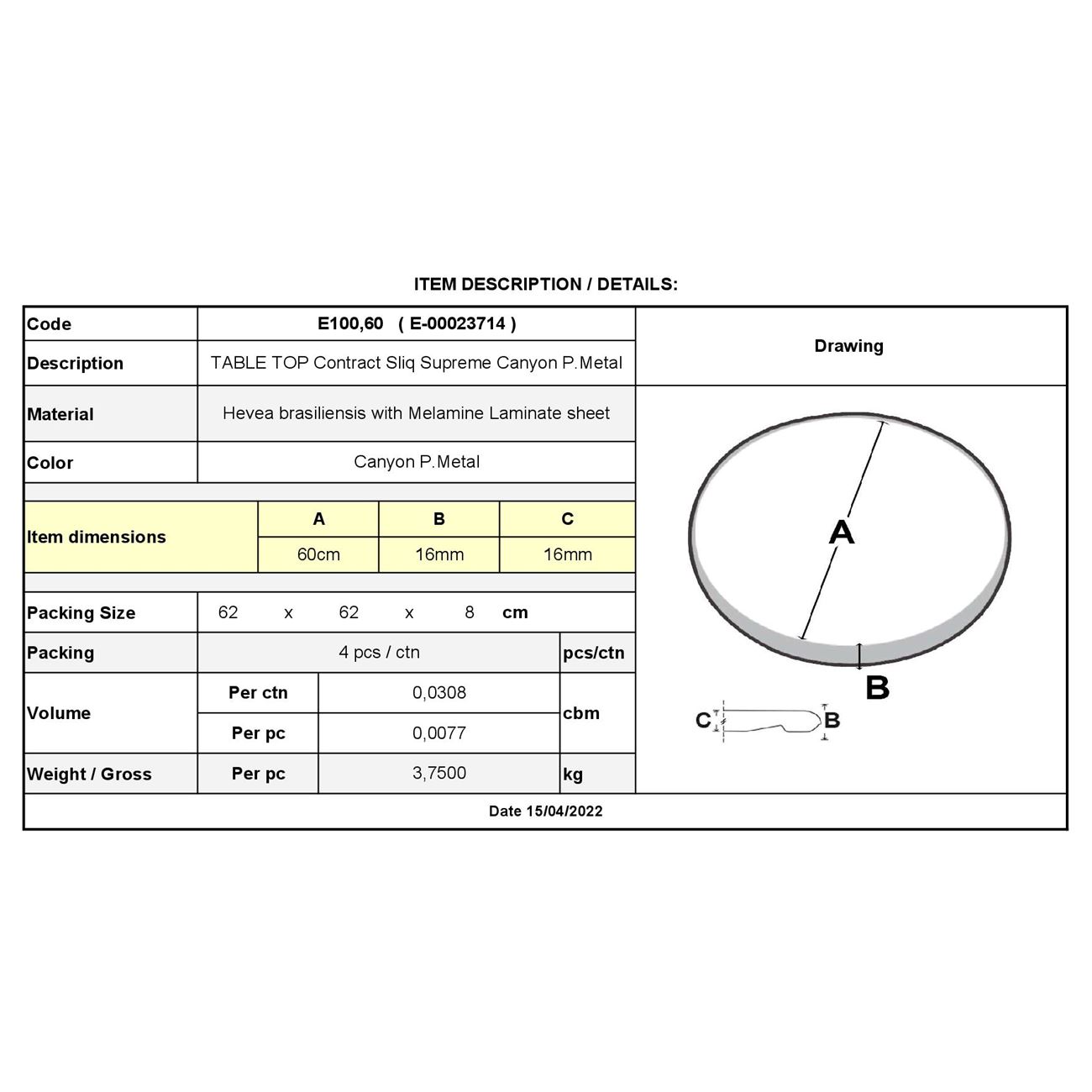 Contract Sliq Smooth Supreme Επιφάνεια Τραπεζιού τ.Werzalit Απόχρωση Canyon P.Metal
