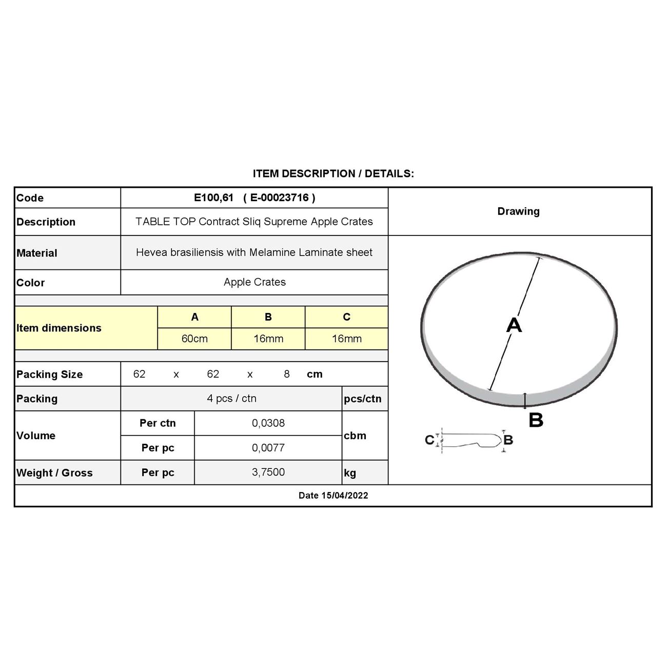 Ε100,61 ΚΑΠΑΚΙ Contract Sliq Supreme Φ60cm/16mm Apple Crates