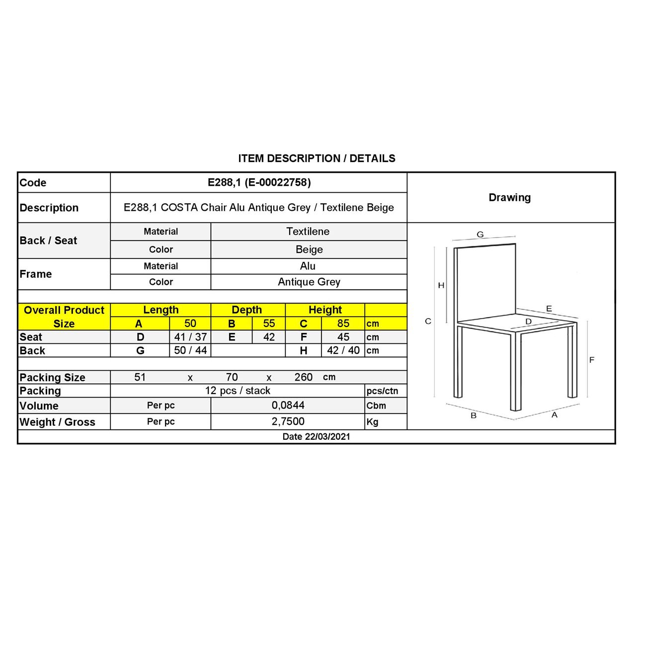 Ε288,1 COSTA Καρέκλα Alu Antique Grey/Textilene Μπεζ