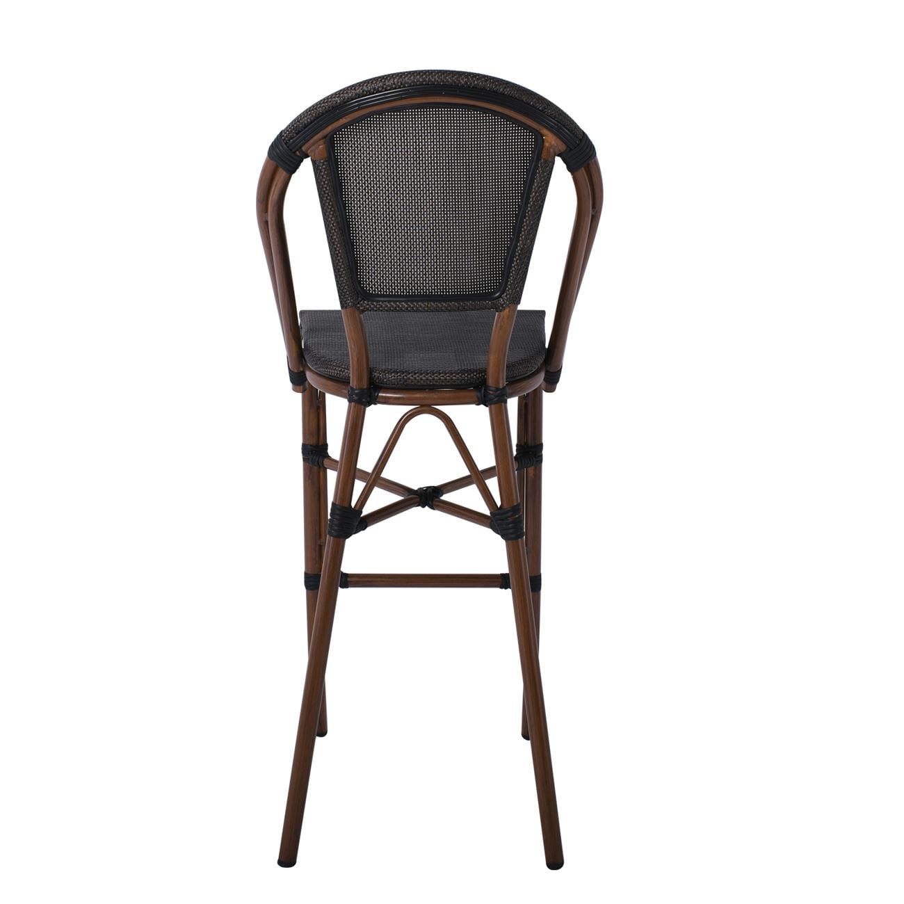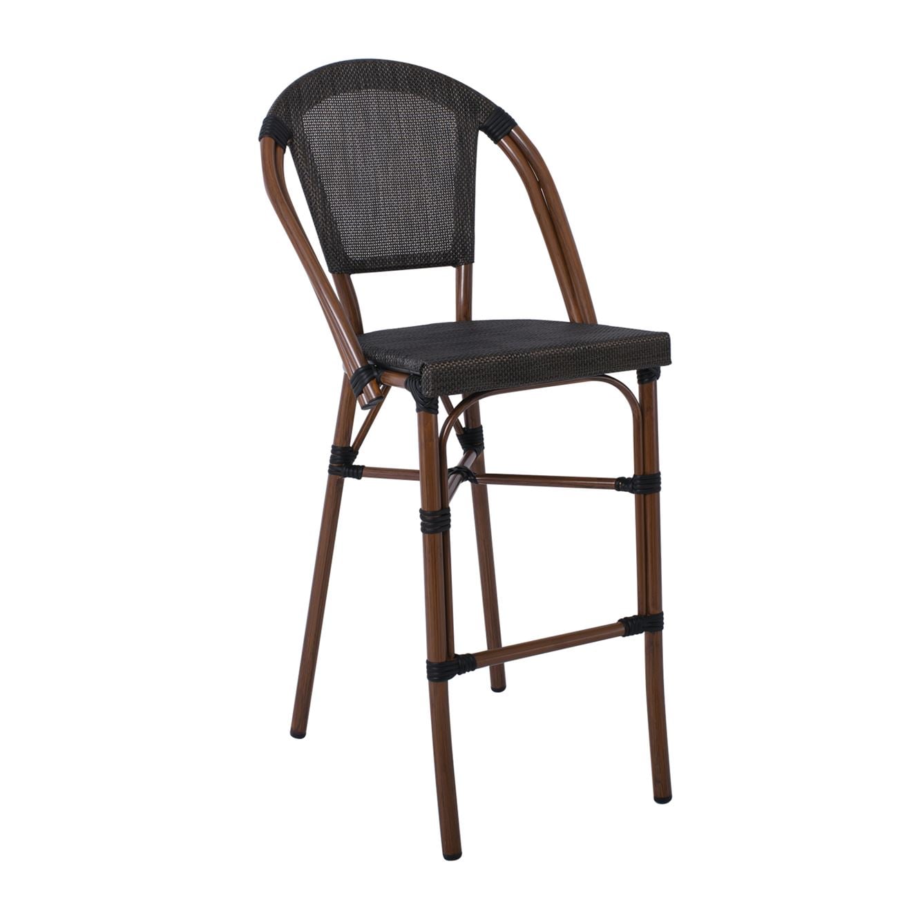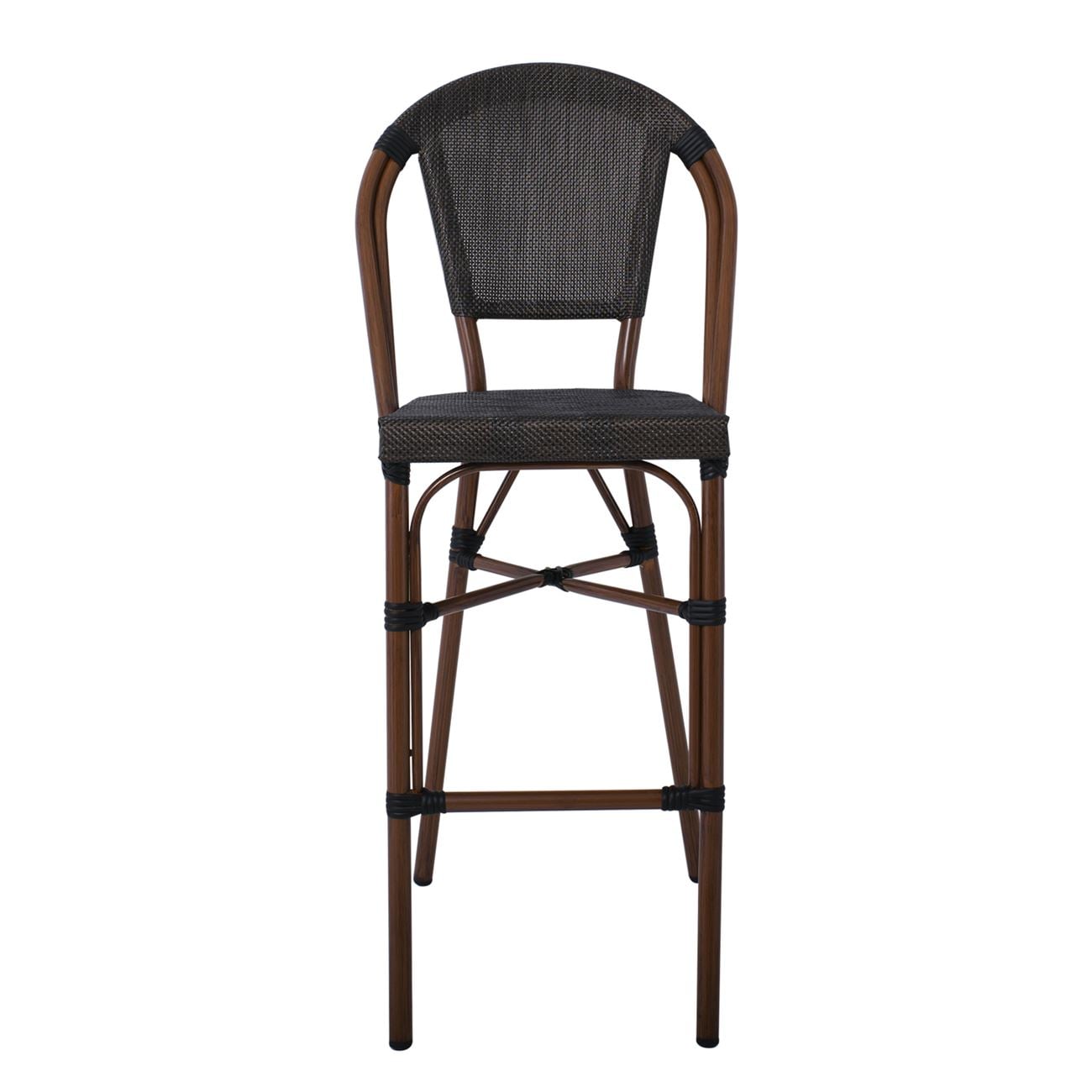 COSTA Σκαμπό BAR με Πλάτη, Αλουμίνιο Απόχρωση Καρυδί, Textilene Μαύρο