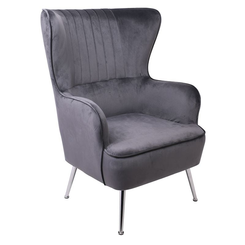 CROMA Πολυθρόνα – Μπερζέρα Σαλονιού – Καθιστικού, Ύφασμα Γκρι Velure