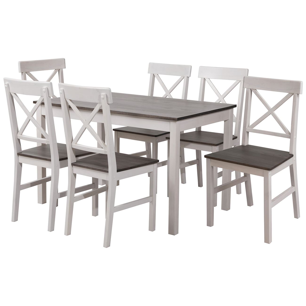 DAILY Set Τραπεζαρία Ξύλινη Σαλονιού – Κουζίνας: Τραπέζι + 6 Καρέκλες / Άσπρο – Dark Oak