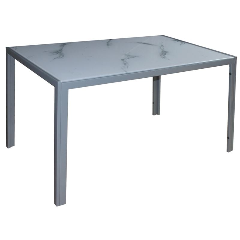 ΕΜ834,3 DEGO Τραπέζι 140x80cm Μέταλ.Βαφή Γκρι/Γυαλί Άσπρο Μάρμαρο