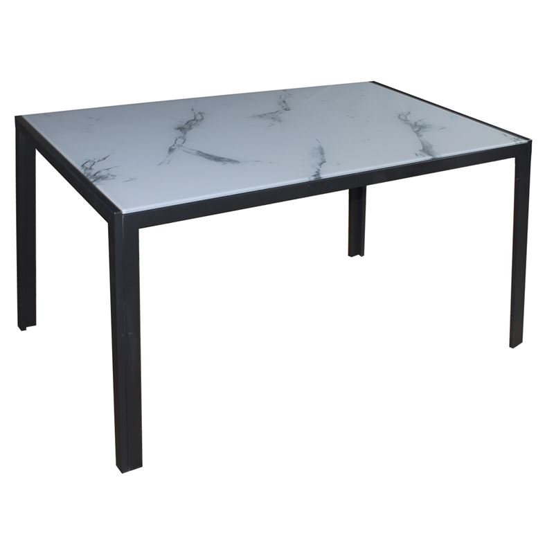 ΕΜ834,1 DEGO Τραπέζι 140x80cm Μέταλ.Βαφή Μαύρo/Γυαλί Άσπρο Μάρμαρο