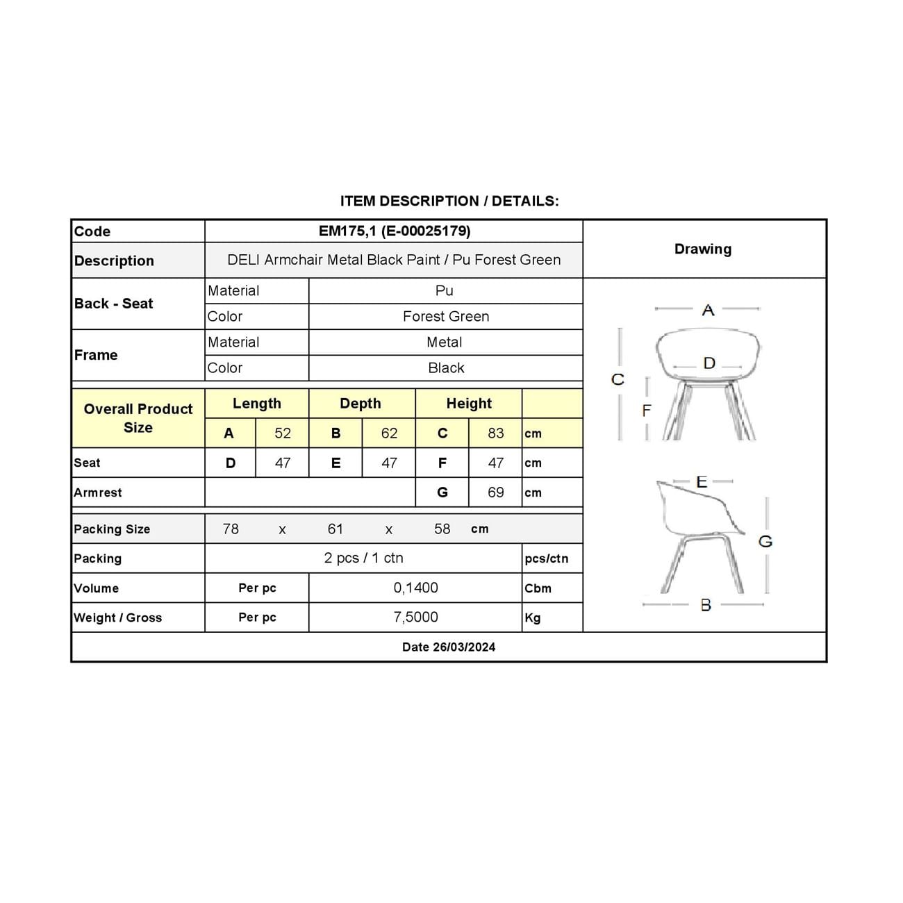 ΕΜ175,1 DELI Πολυθρόνα Μεταλλική Βαφή Μαύρο/Pu Forest Green