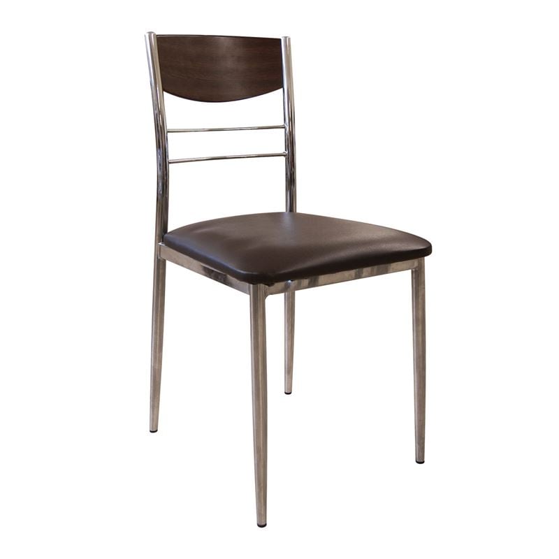 DINO Καρέκλα Τραπεζαρίας Κουζίνας, Μέταλλο Χρώμιο Σκούρο Καρυδί, PVC Καφέ
