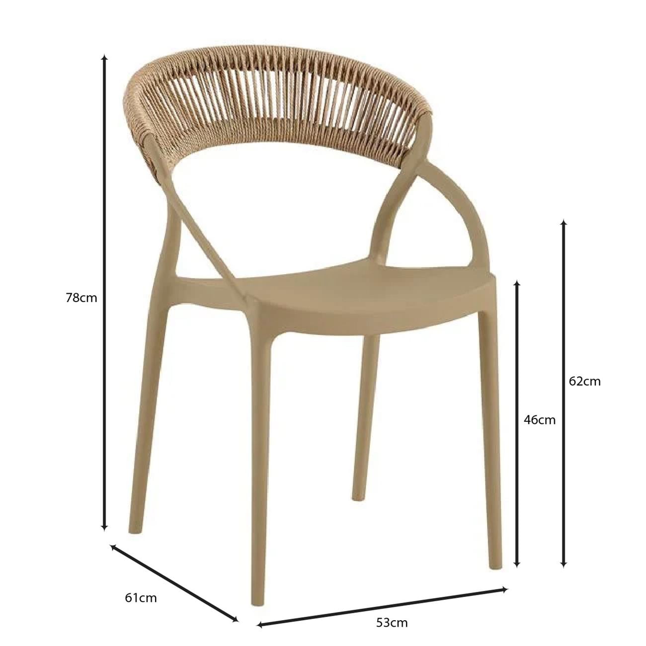 DORA Πολυθρόνα Στοιβαζόμενη, PP Tortora, Rope Wicker Φυσικό