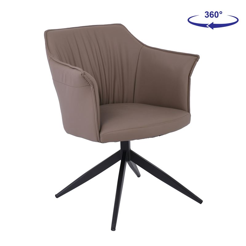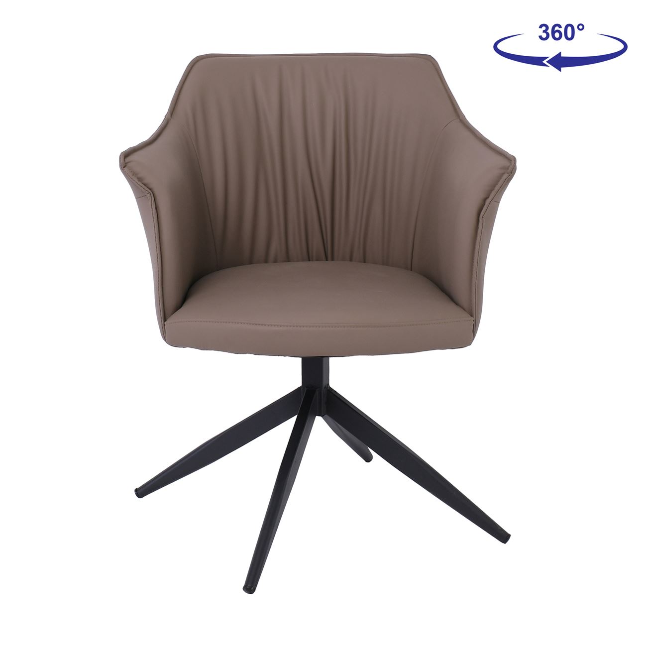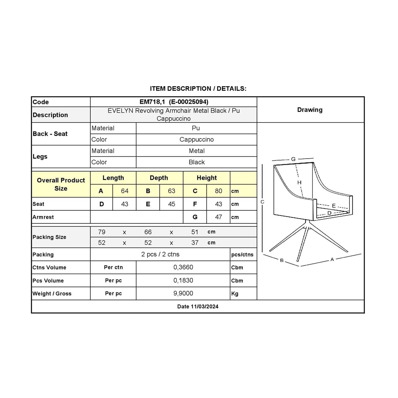 EVELYN Πολυθρόνα Περιστρεφόμενη, Μέταλλο Βαφή Μαύρο, Pu Cappuccino