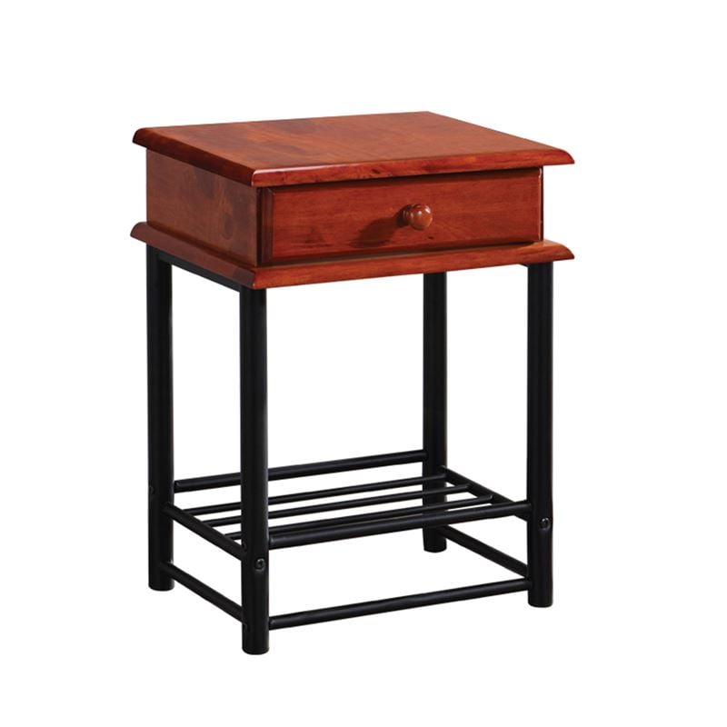 Ε8205 FLORA-II Κομοδίνο Μεταλ.Μαύρο/Ξύλο Καρυδί