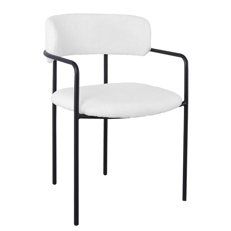 GILLAN Πολυθρόνα Μέταλλο Βαφή Μαύρο, Ύφασμα Teddy, Απόχρωση Άσπρο