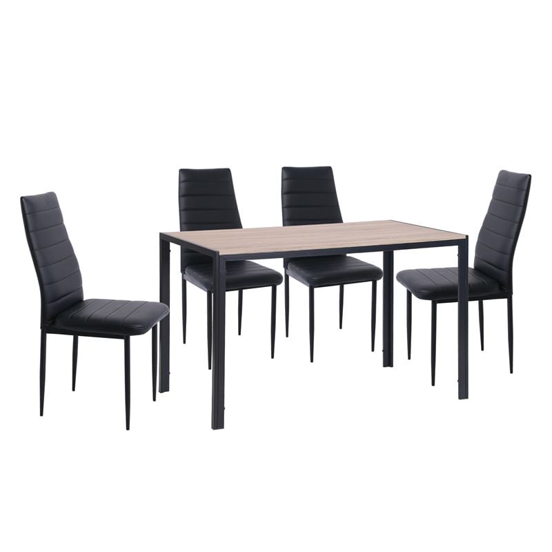 JETTA-GABO Τραπεζαρία Κουζίνας Μέταλλο Βαφή Μαύρο, Τραπέζι Sonoma + 4 Καρέκλες Pvc Μαύρο