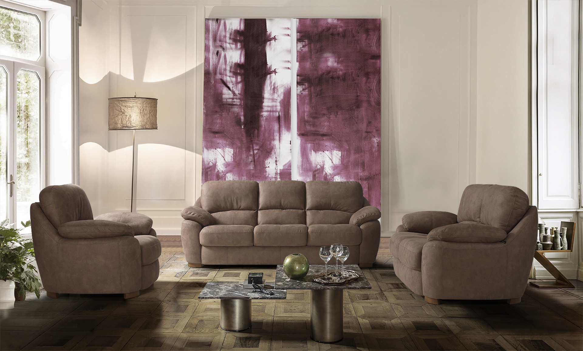 Καναπές Okn-Coma Διαθέτει: τριθέσιο καναπέ, διθέσιο καναπέ και πολυθρόνα. Σκελετός από φουρνιστή οξιά.