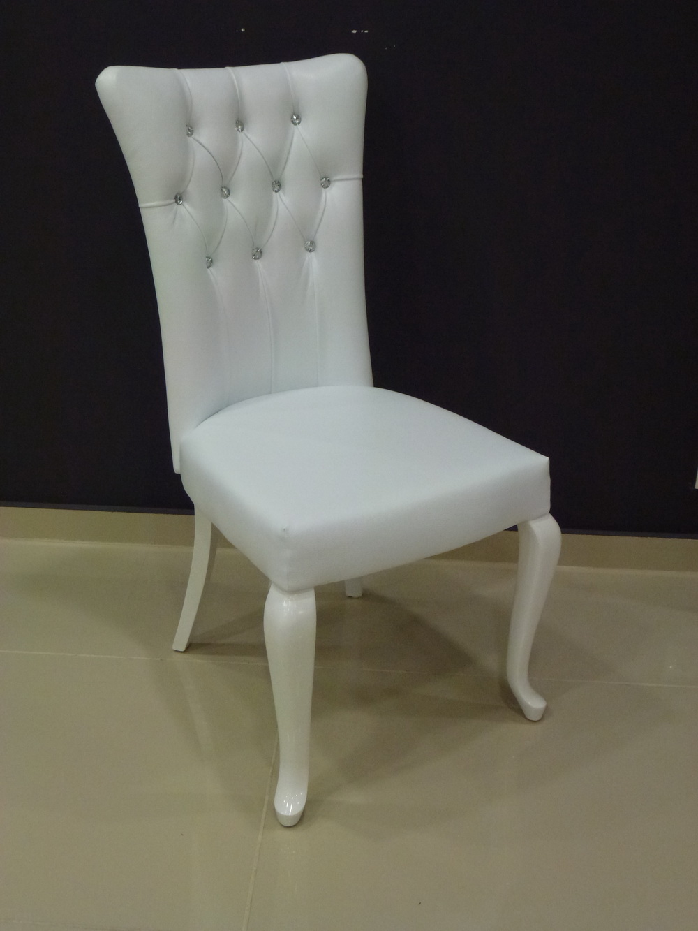 Καρέκλα Τραπεζαρίας Bln-1072 με λευκό τεχνόδερμα και strass από λευκή λάκα.