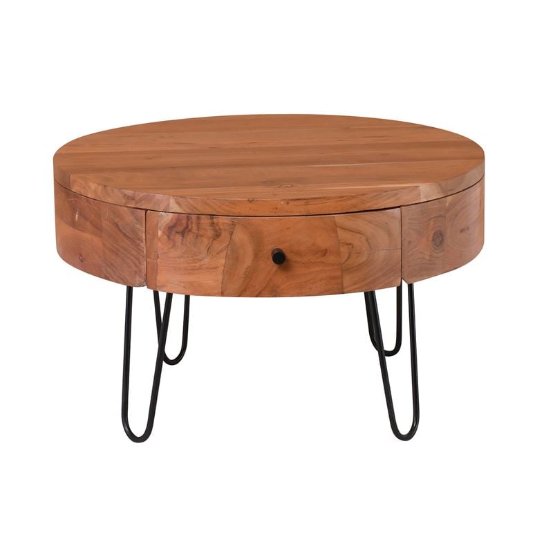 Ποιότητα και Διαχρονικό Design Αυτό το coffee table είναι κατασκευασμένο από μασίφ ξύλο ακακίας σε φυσική, ζεστή απόχρωση. Ο συνδυασμός του ξύλου με τα ανθεκτικά μεταλλικά πόδια σε μαύρο ματ χρώμα δημιουργεί ένα κομψό industrial (βιομηχανικό) στυλ που ταιριάζει σε κάθε μοντέρνο σαλόνι.