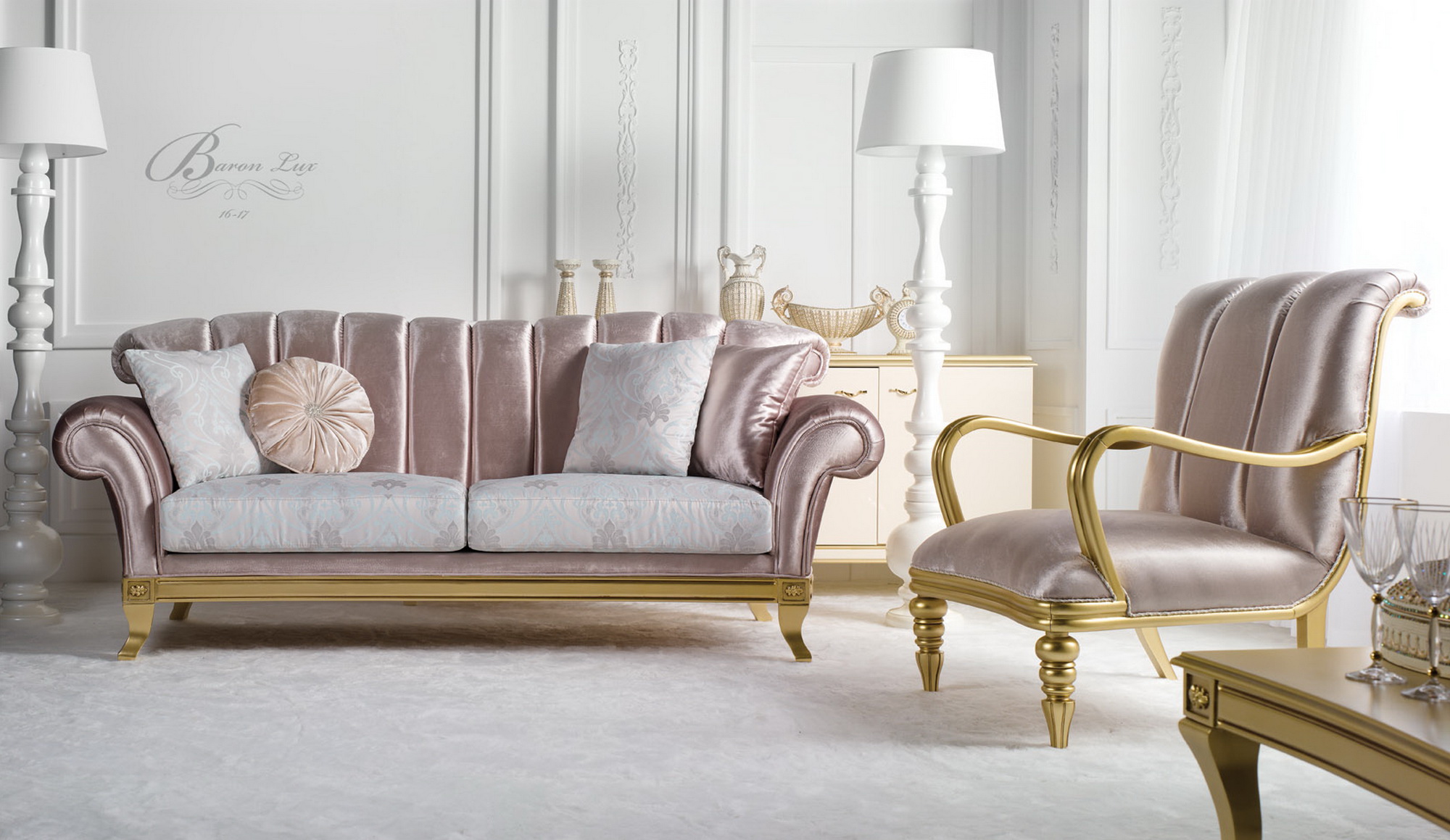 Κλασικός καναπές Rzg-Baron Lux που αποτελείται από τριθέσιο καναπέ, διθέσιο καναπέ και πολυθρόνα. Σκελετός από φουρνιστή οξιά.