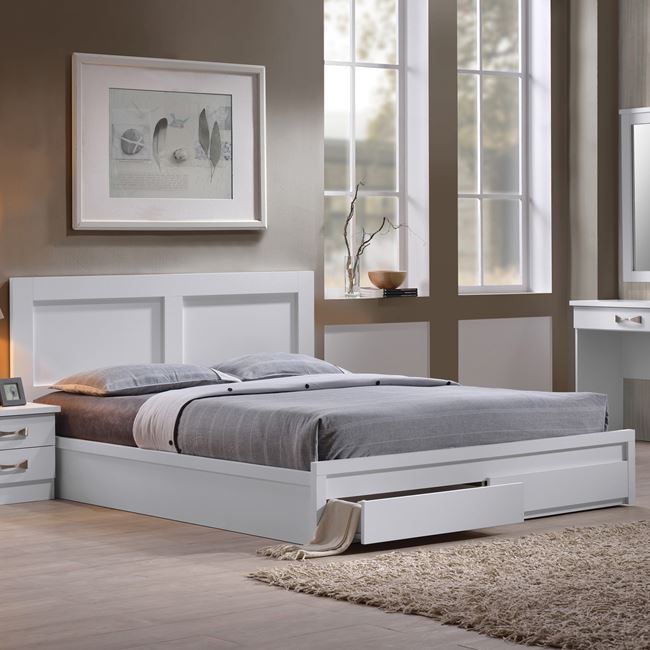 Κρεβάτι Διπλό Life σε λευκό χρώμα , για στρώμα 160Χ200 , με δυο συρτάρια.