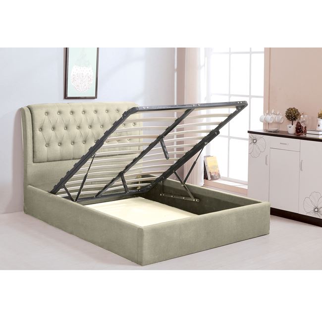 Μοντέρνο διπλό κρεβάτι Maxwell με αποθηκευτικό χώρο για στρώμα 160*200 με ύφασμα εκρού.