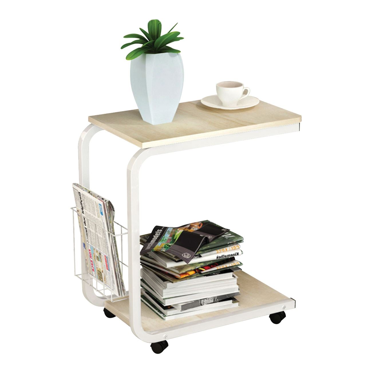 LAP Βοηθητικό Τραπεζάκι, Μέταλλο Βαφή Άσπρο, Απόχρωση Maple
