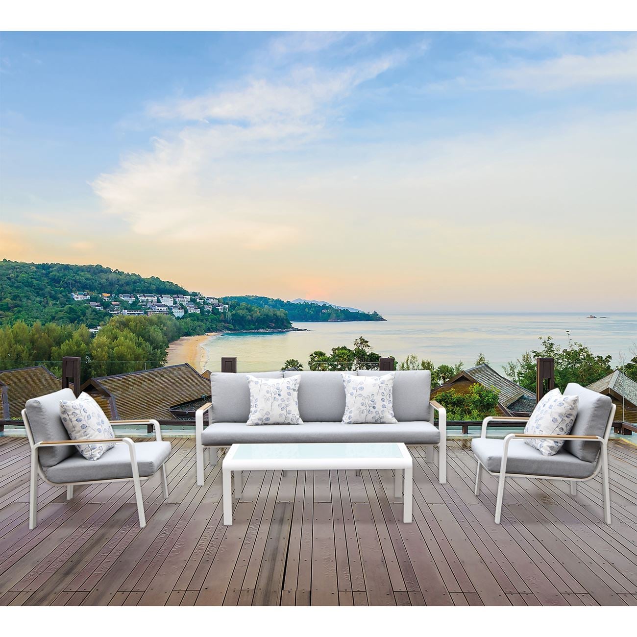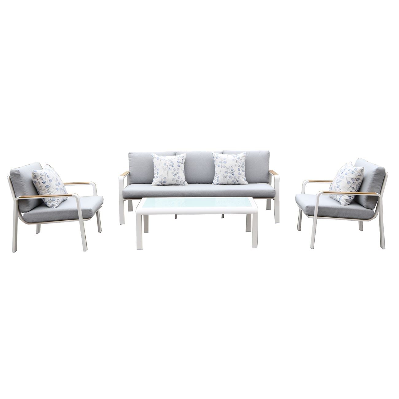 LATINO Set Σαλόνι Κήπου 4τεμ, Αλουμίνιο Άσπρο, Μαξιλάρια Ανοιχτό Γκρι, Γυαλί Άσπρο