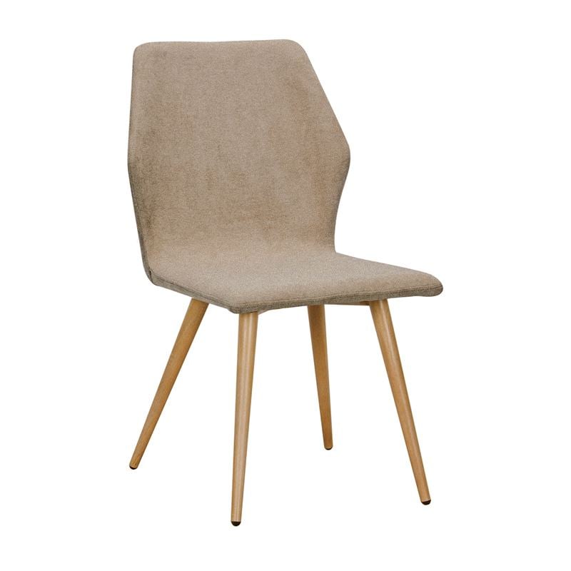 LETO Καρέκλα Τραπεζαρίας Κουζίνας, Μέταλλο Βαφή Φυσικό, Ύφασμα Ανοιχτό Καφέ