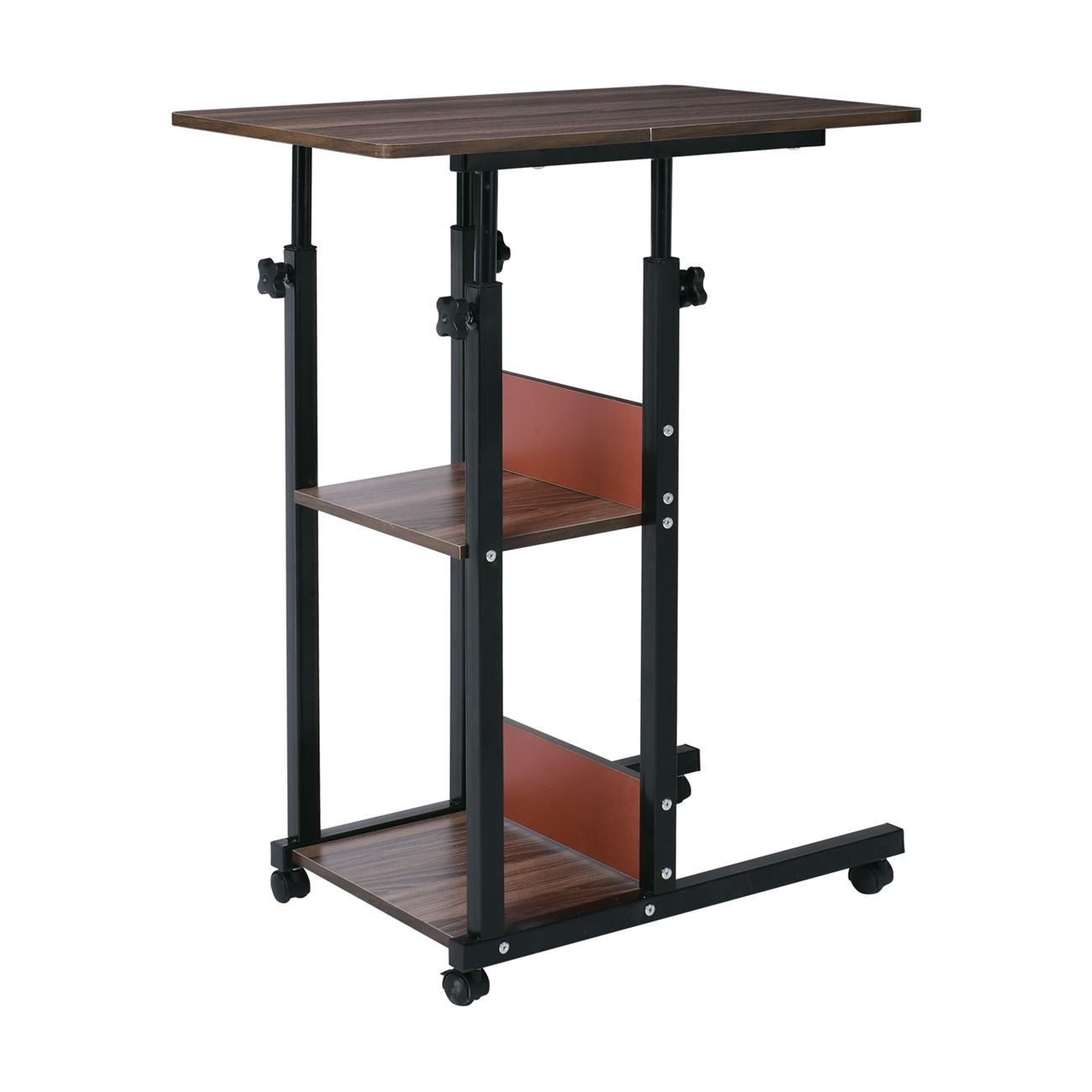 LIFT Βοηθητικό Τραπεζάκι Μέταλλο Βαφή Μαύρο, Melamine Απόχρωση Σκούρο Καρυδί