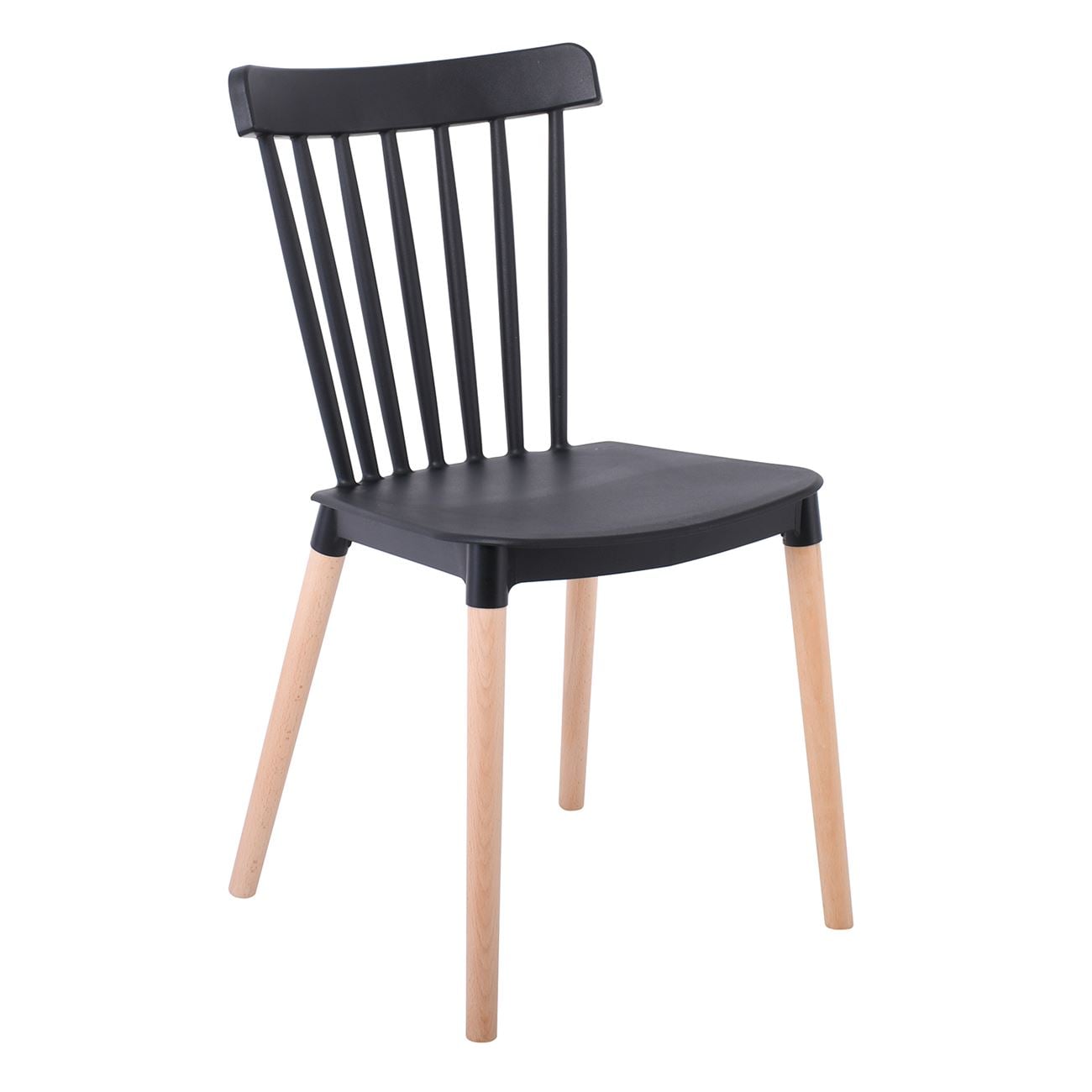 LINA Καρέκλα Τραπεζαρίας – Κουζίνας, PP Μαύρο, Πόδια Οξιά Φυσικό
