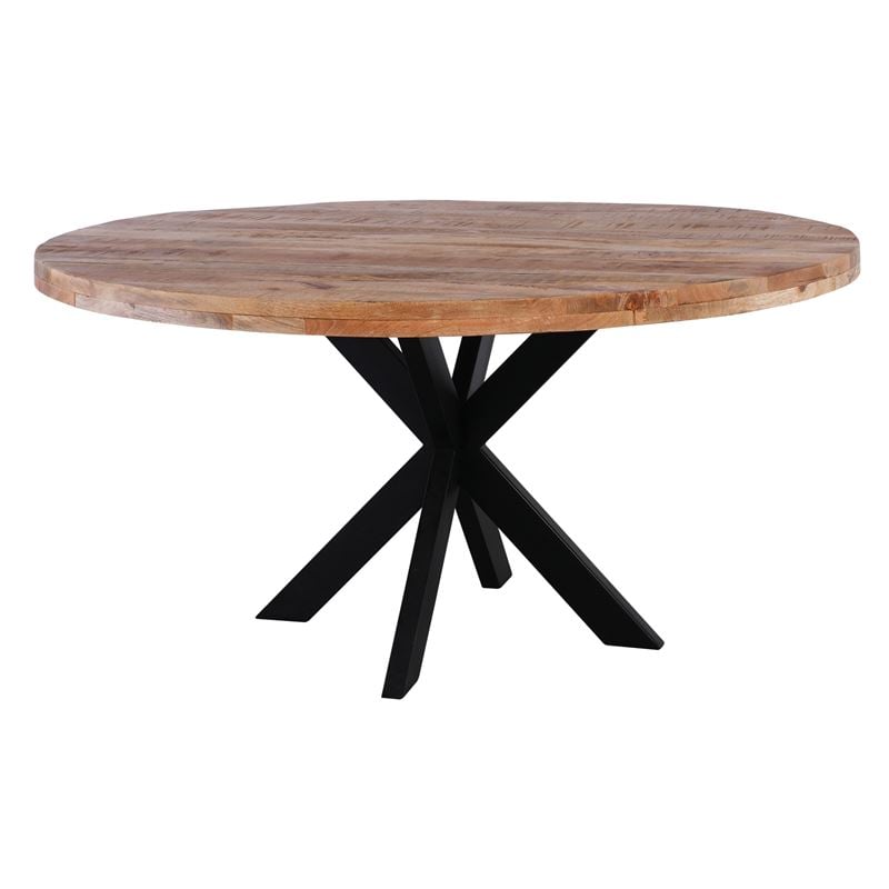 LIZARD Τραπέζι Ροτόντα Τραπεζαρίας, Ξύλο Mango Απόχρωση Φυσικό, Μέταλλο Μαύρο