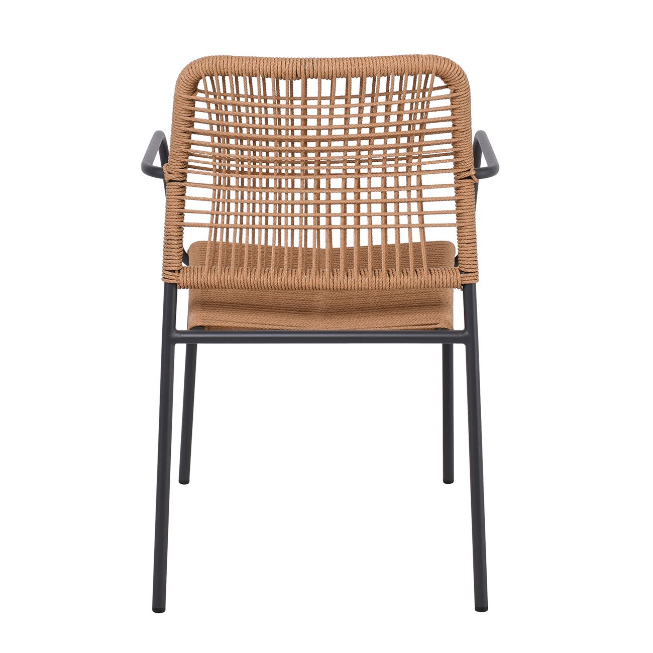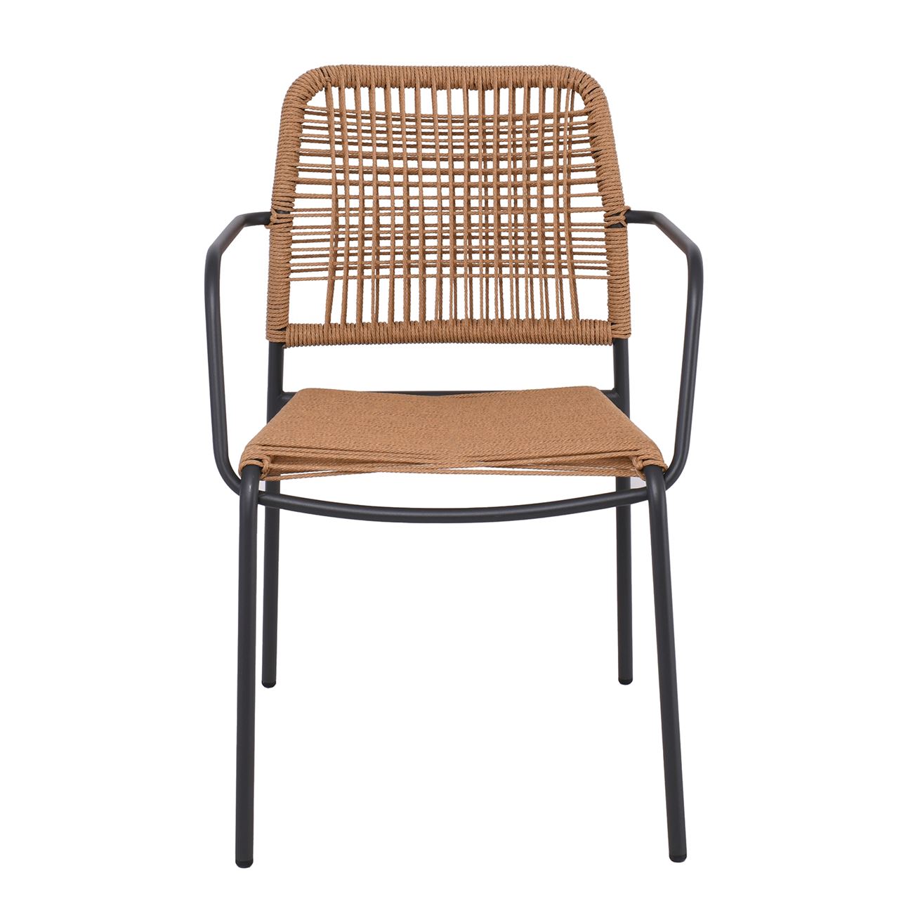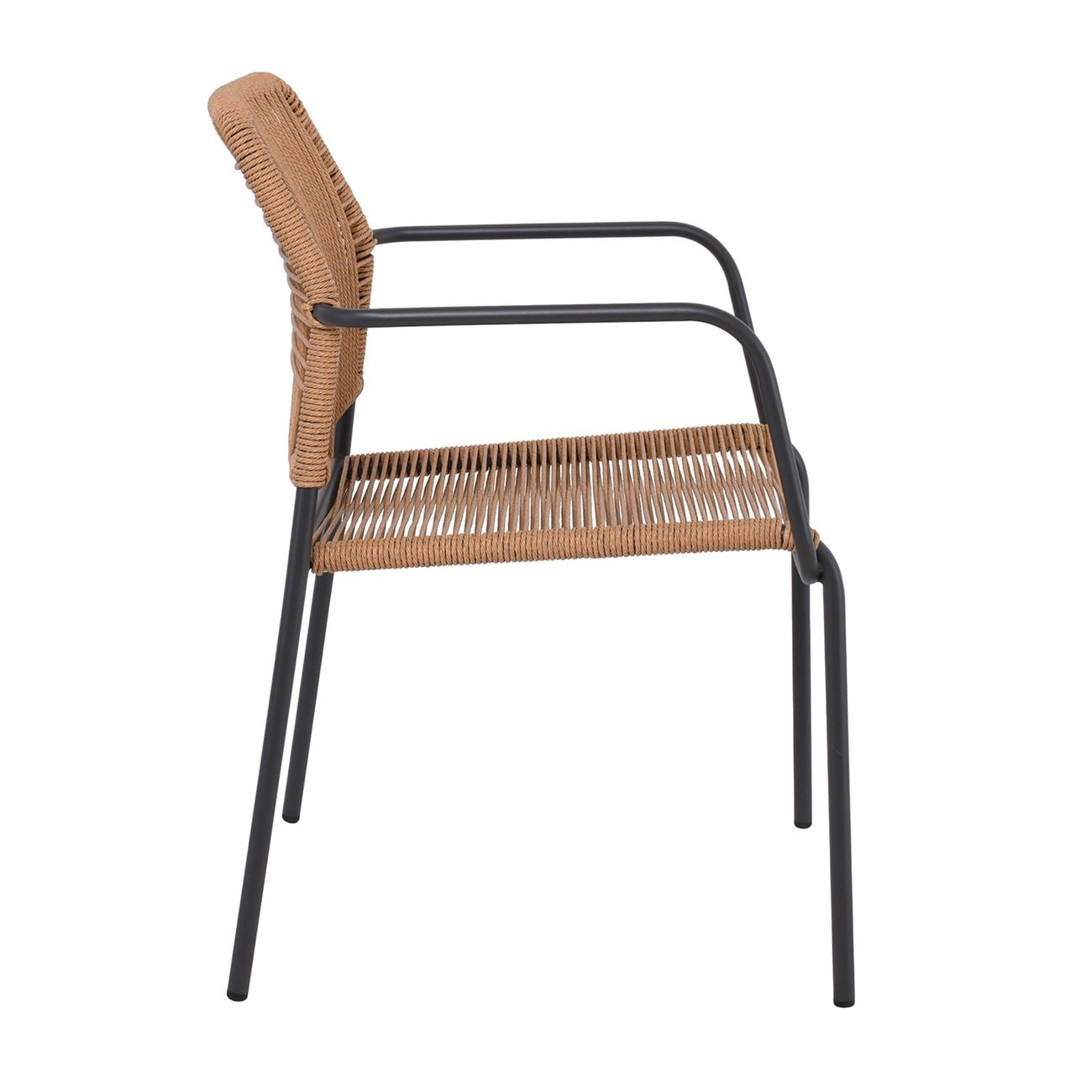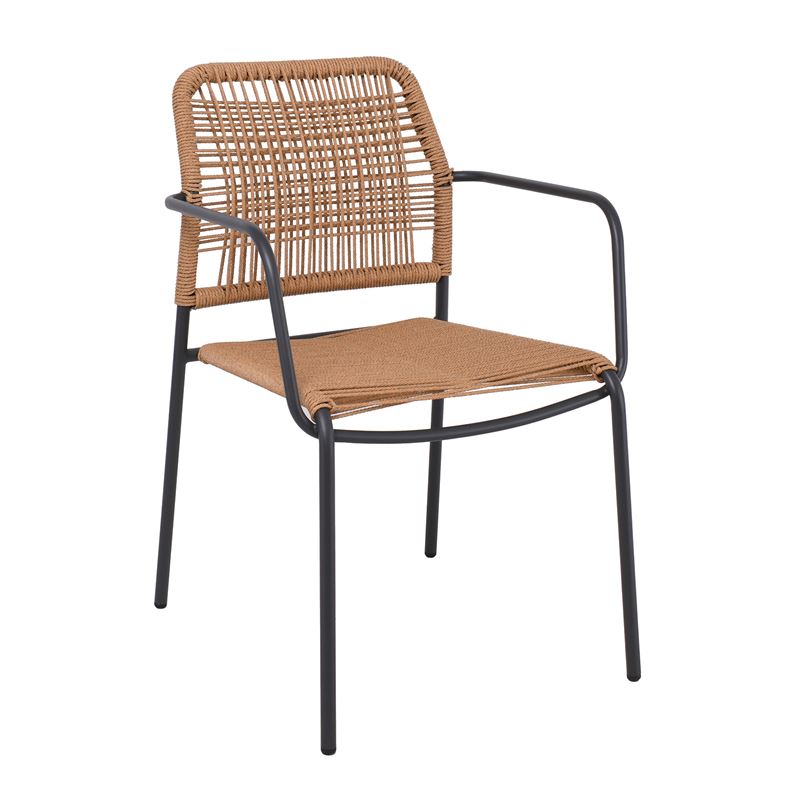 LUIGI Πολυθρόνα Βεράντας-Κήπου Μέταλλο Βαφή Ανθρακί, Rope Wicker Φυσικό, Στοιβαζόμενη