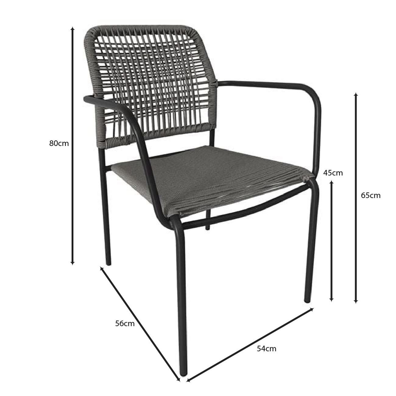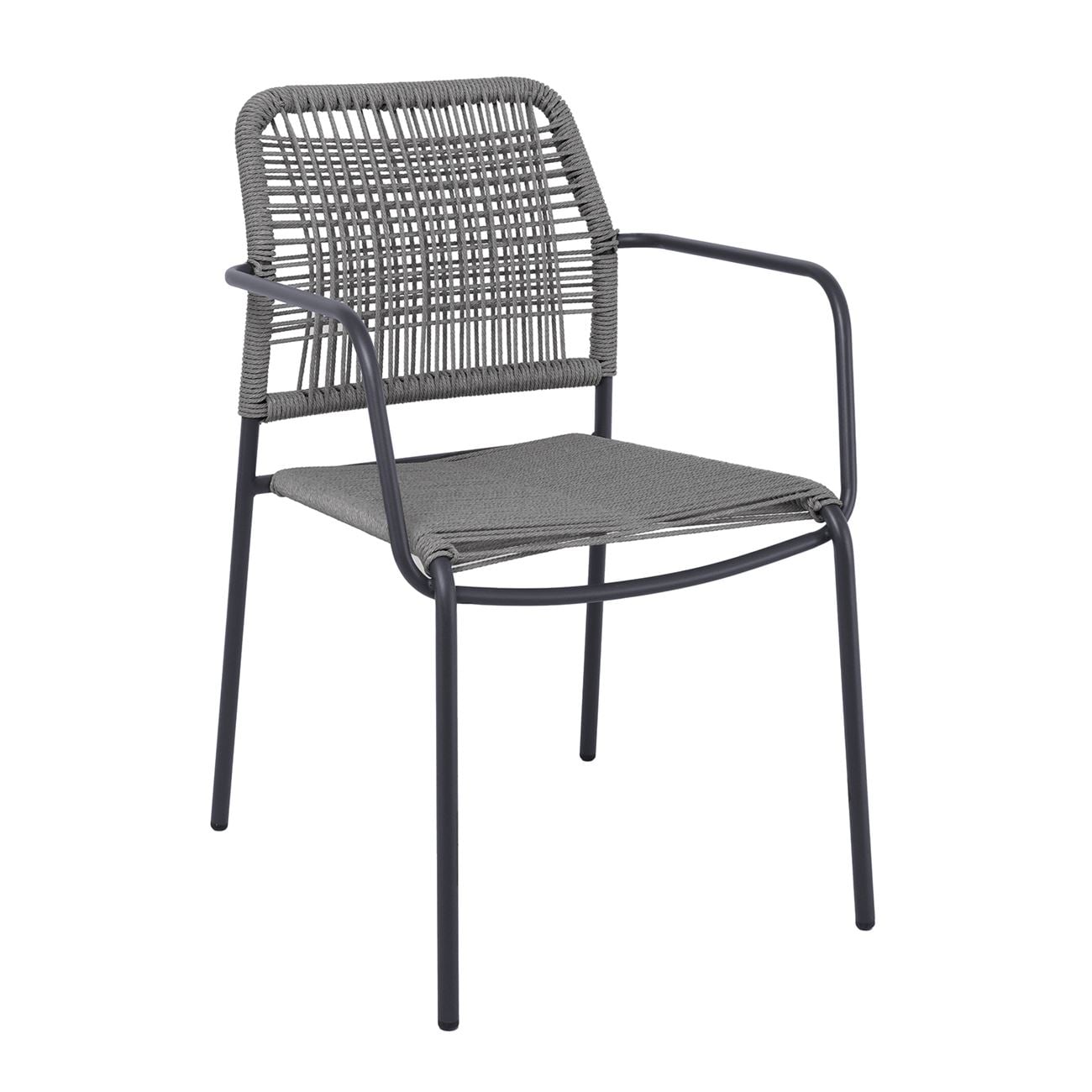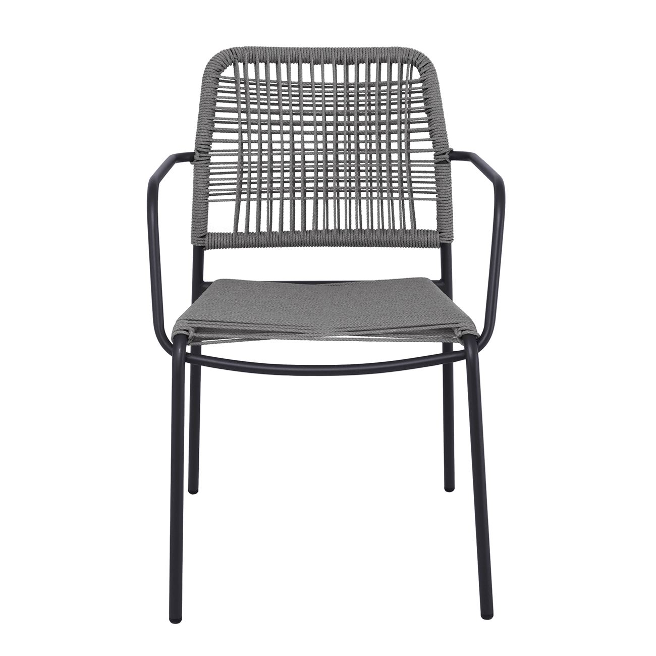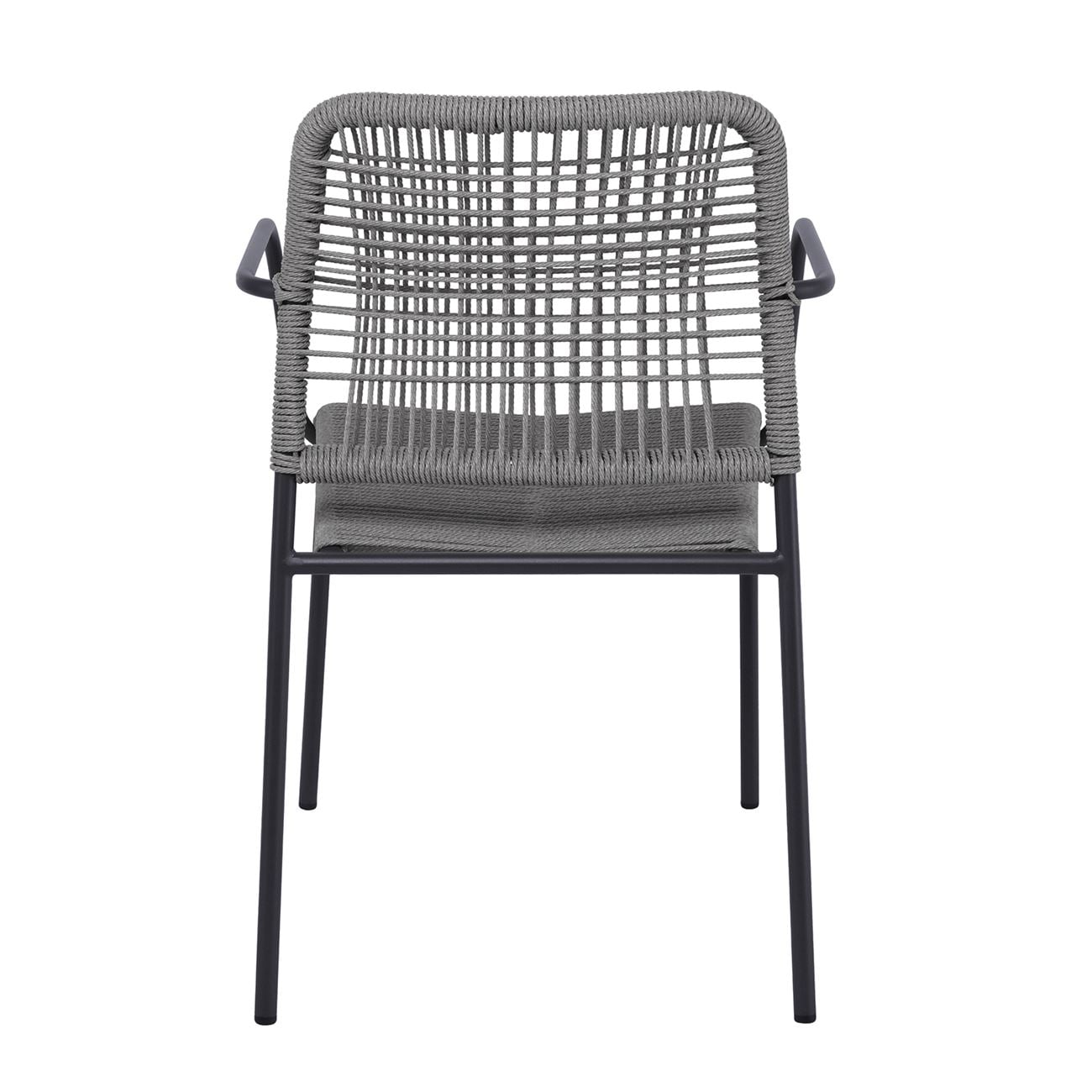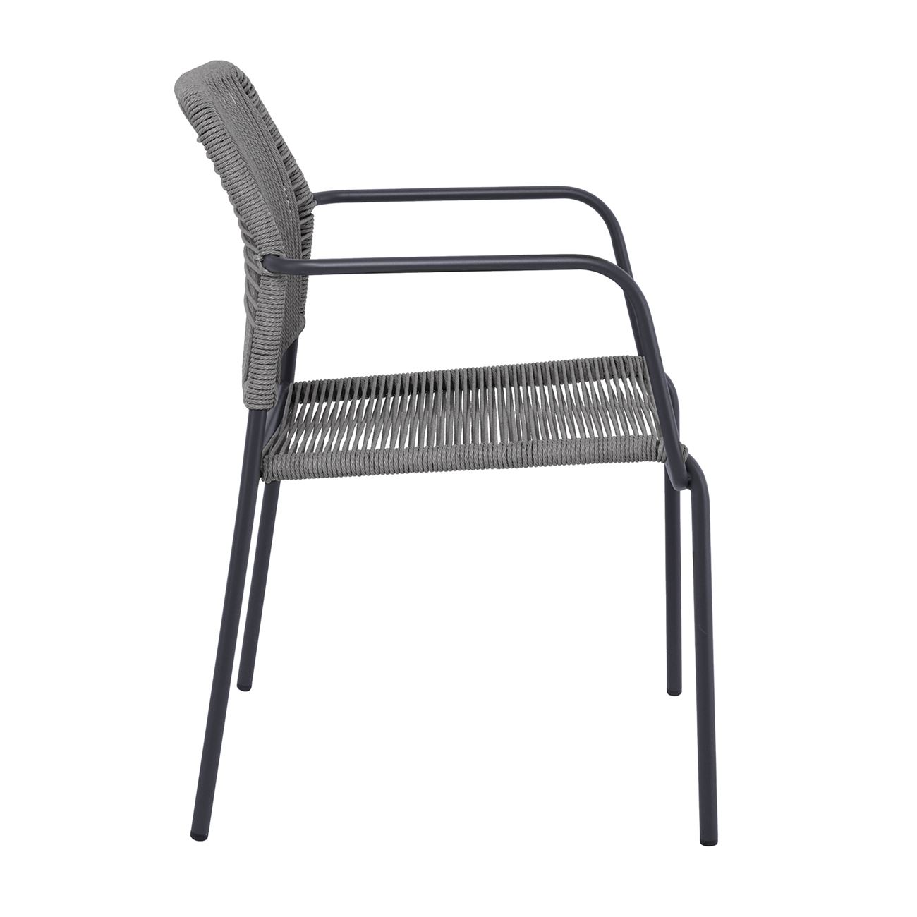 LUIGI Πολυθρόνα Βεράντας-Κήπου Μέταλλο Βαφή Ανθρακί, Rope Wicker Γκρι, Στοιβαζόμενη